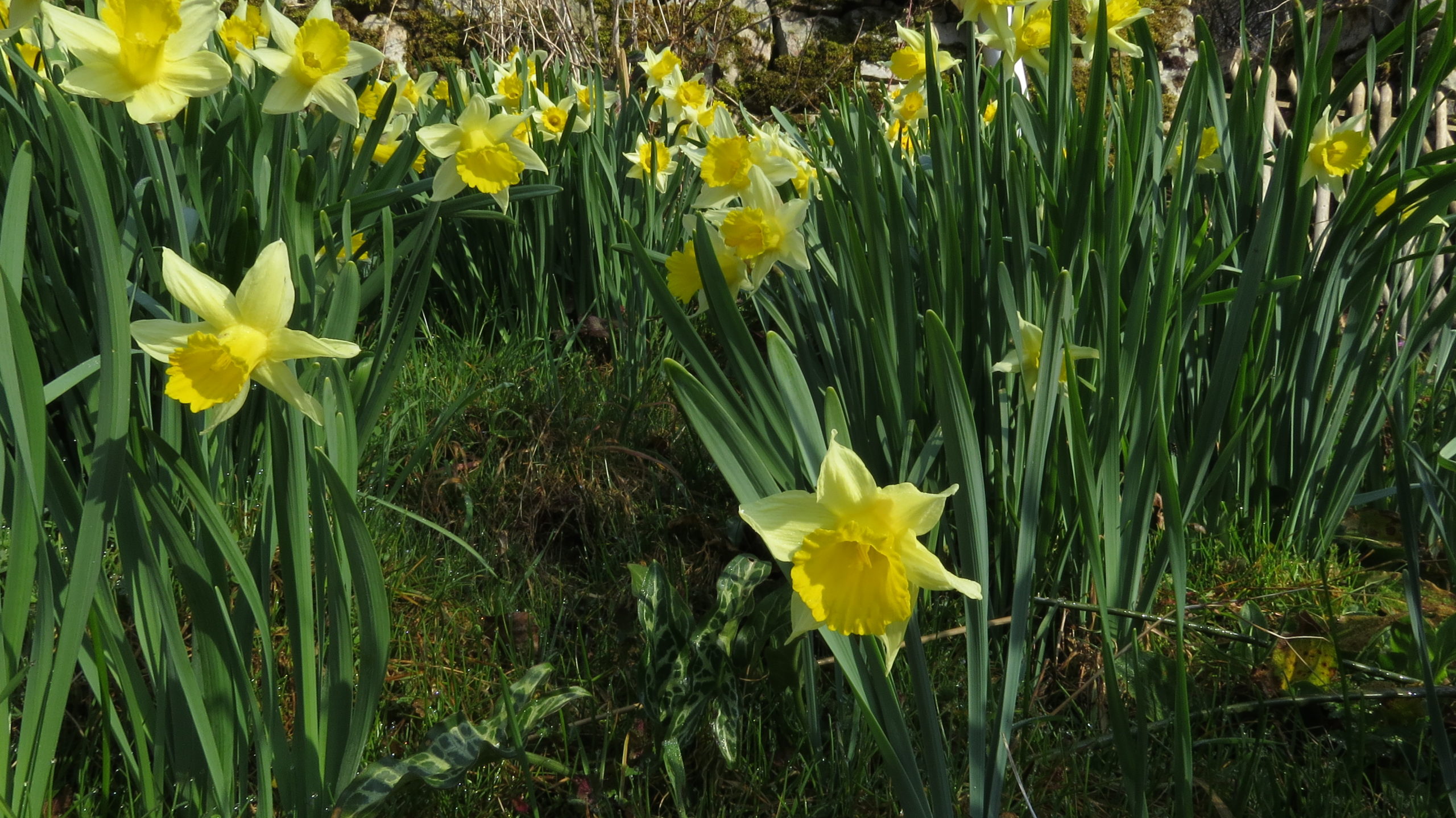 Ik koester de plekken op mijn terrein waar de wilde narcissen naar boven komen, ik zorg dat er weinig bramen of ander asociaal spul in de weg staat. En dat wordt gewaardeerd, het aantal uitbundig bloeiende wilde narcissen groeit jaarlijks hier op mijn berghelling.