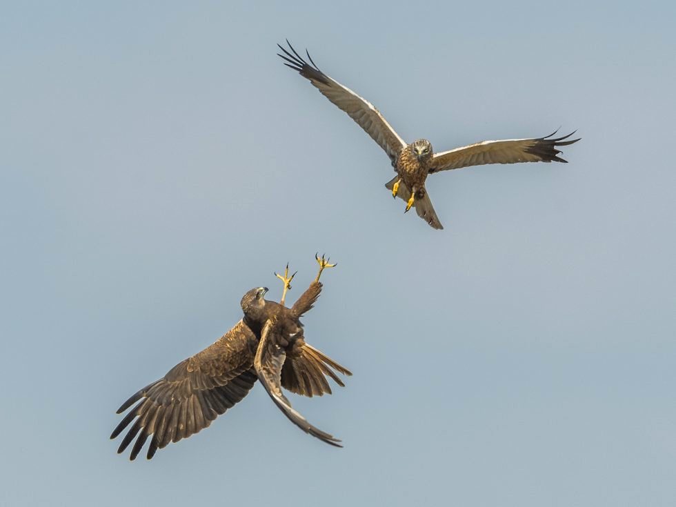 Geweldig zoals fotograaf Erik Veldkamp dit gevecht van bruine kiekendieven heeft weten vast te leggen! Dit zegt de fotograaf erover: “Ik zag een viertal bruine kiekendieven constant elkaars leven zuur maken. Meestal zaten de mannetjes elkaar in de haren maar hier een vrouwtje en het wat kleinere mannetje boven.”