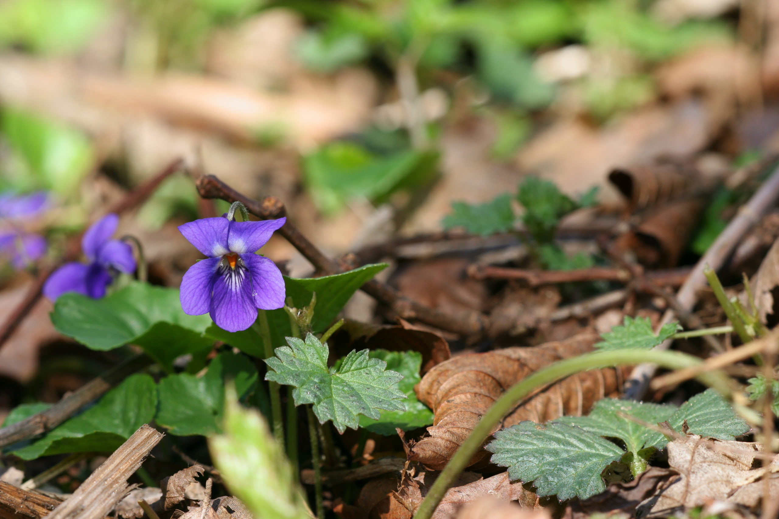 Prominent lid van het gezelschap blauwe viooltjes. In de inheemse flora zijn er twaalf soorten viooltjes te vinden. Vier zijn er meerkleurig én klein en willen niets te maken hebben met die opgevoerde tuincentrumflapviolen. De rest van de wilde familie Viola is in allerlei schakeringen blauwachtig, met een lichte neiging naar paars. Daar werden ooit violette kleurstoffen van gemaakt, maar die waren niet stabiel en verbleekten snel. Chemie maakt een betrouwbaarder violet.