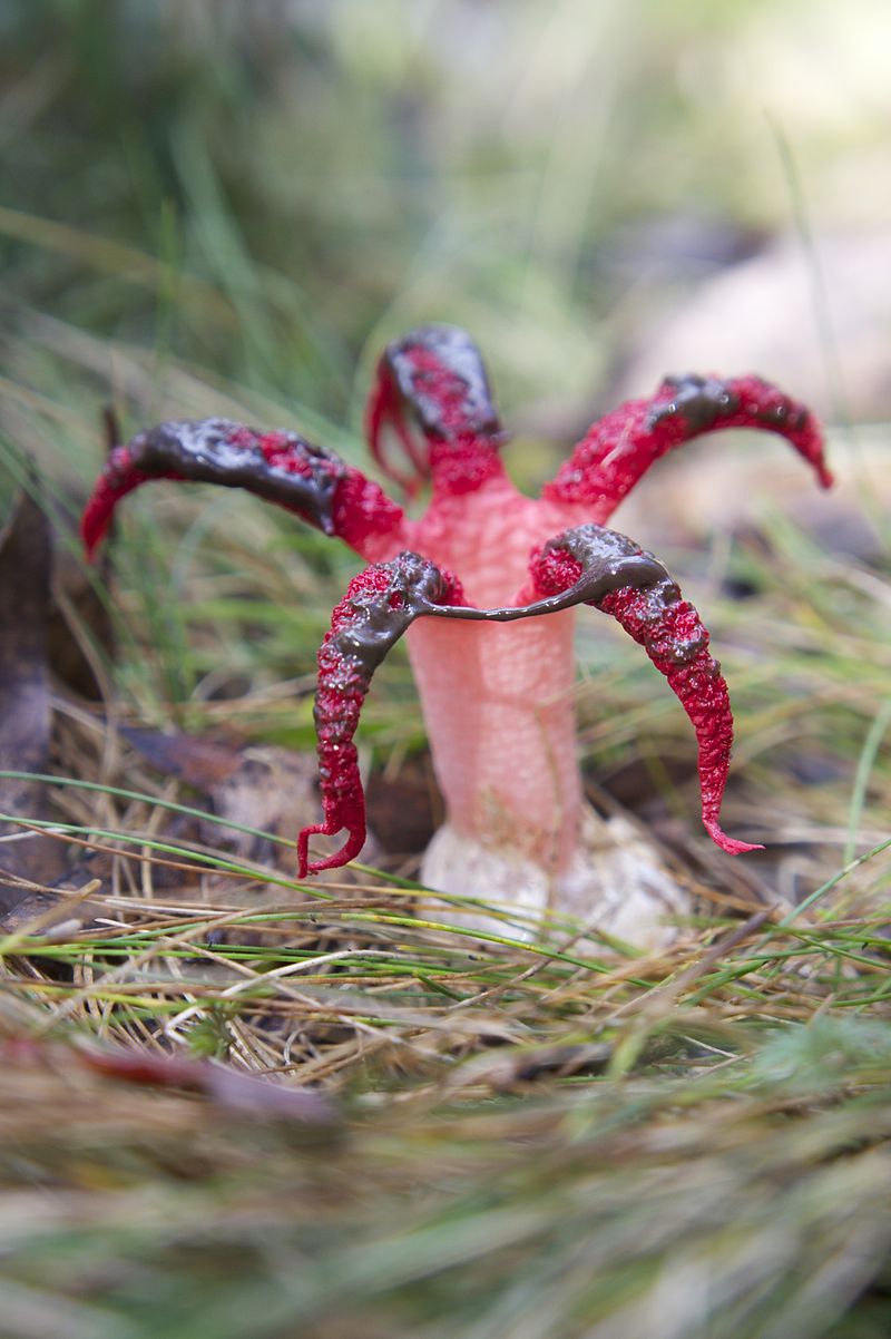 De inktviszwam begint met een ei, net boven de grond. Dat ei kan tegen een stootje, zelfs als het (enigszins) vertrapt wordt, komen er een paar dagen later de kenmerkende rode tentakels uit. Het aantal tentakels kan variëren van 4 tot 7.