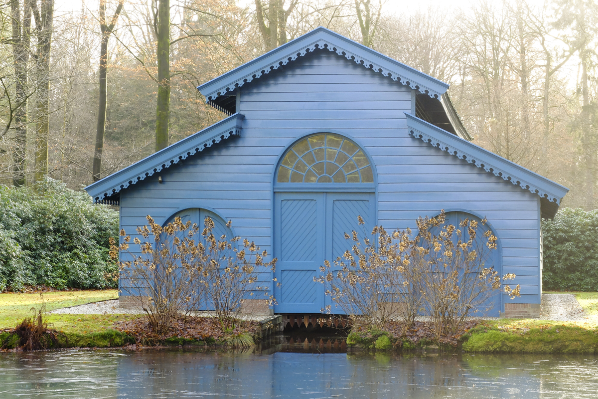 We liepen verder, langs een perfect geschilderd botenhuis en langs koepeltje Bijlandt Rust dat ergens diep in het bos ligt. We flaneerden langs kaarsrechte beken – diep uitgegraven in het landschap – met helder water waarin geen blaadje dreef. De wandeling werd steeds sprookjesachtiger. Toen zei vriendin M. voor de grap: “Waar is de horeca?” Ik haalde een thermosfles met thee uit de rugzak: “Ik heb alleen geen zilveren bekers.” Luisterend naar de vogels dronken we thee op een koninklijk bospad.