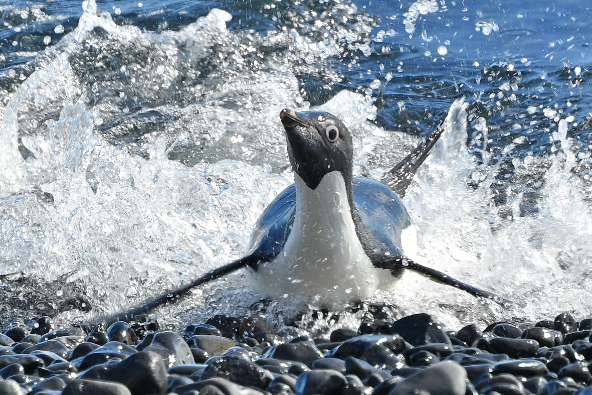 Veel te vlug nadert onze expeditie alweer het einde… Vanavond beginnen we aan onze terugtocht over de Drake Passage – en dus wordt het tijd om mijn laptop veilig op te bergen. Maar voor het zover is, maken we nog twee onvergetelijke landingen. Allereerst varen we de haven van Deception Island binnen: we gaan voor anker in de krater van de (nog altijd actieve) vulkaan! Vrijwel nergens ter wereld vind je zo’n bijzondere natuurlijke haven. Eigenlijk is het de bedoeling dat we hier ook een duik nemen, want door de vulkanische activiteit is het water hier relatief warm. Maar eenmaal aan land blijkt het te hard te waaien, en dus zetten we koers naar Half Moon Island, om op gepaste wijze afscheid te kunnen nemen van de adéliepinguïns.