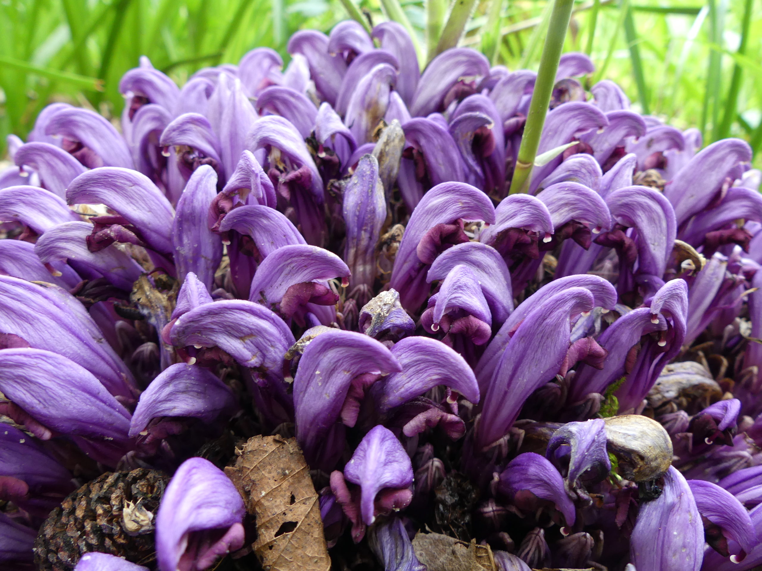 Er is trouwens nog wel een probleempje: de schubwortel is lastig, zeg maar verdacht. Zijn zondagse naam Lathraea clandestina is een waarschuwing. Hij doet kennelijk iets wat wij mensen niet eerlijk vinden. Klopt, en het zit in de familie, de bremraapfamilie. Een bremraapfamilielid bijvoorbeeld heet klavervreter. Klinkt ook niet best. De familie telt een tiental soorten, die allemaal parasiteren op een andere plant.