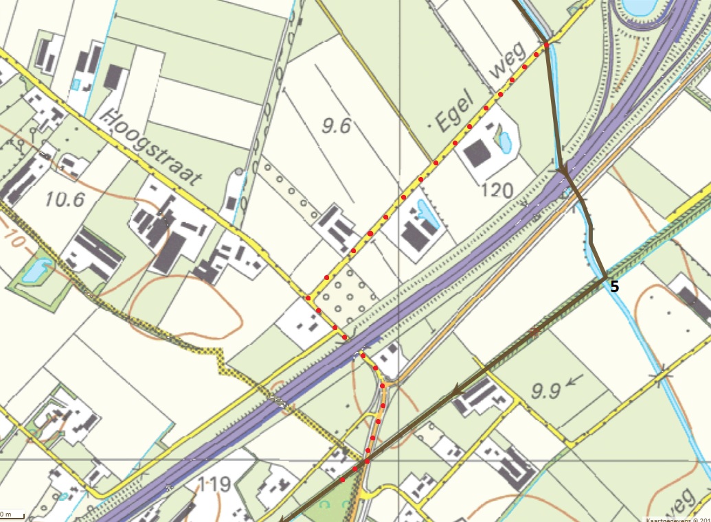 Tussen routepunt 4 en 5 wordt er gewerkt aan het landschap. Dit levert vanaf punt 4 de volgende aanpassing op: