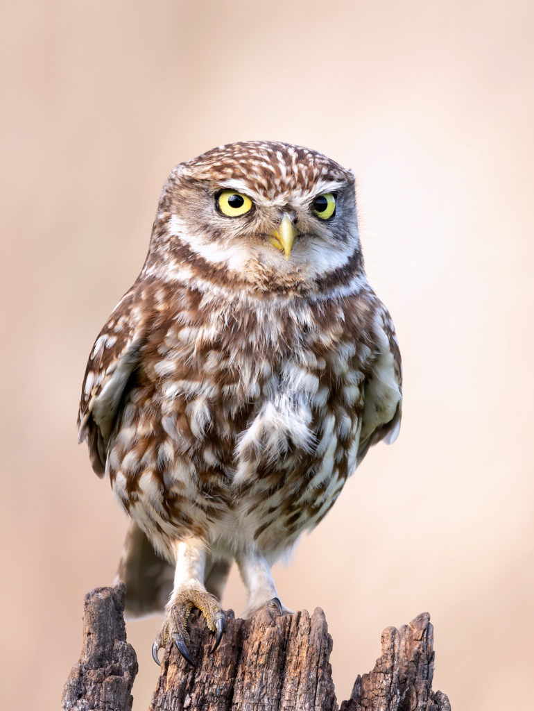 Steenuil portret – Ines Jonkers. Aansprekend portret met harmonieuze achtergrond.
