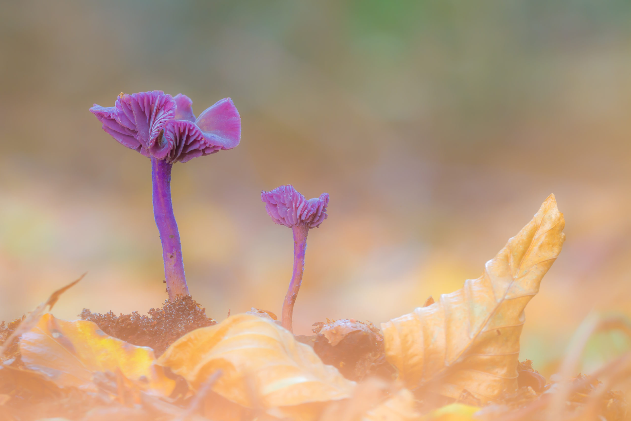 Winnaar van de maand • Amethistzwam • Leo Deknatel Een perfecte compositie (mede door het omhoog staande blad) en een verrassende kleurencombinatie maken deze foto bijzonder.