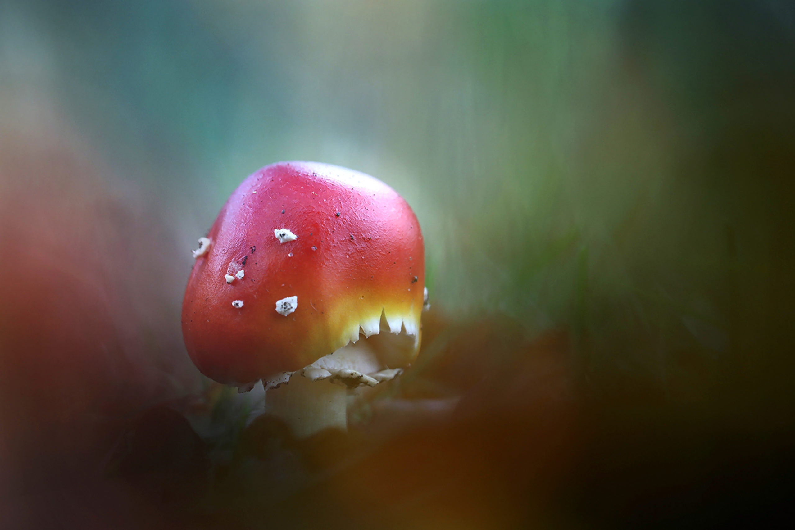 Vliegenzwam • Yvonne aan de Wiel – Zeer verrassend beeld van de overbekende vliegenzwam. Je kunt veel associëren bij deze foto, zo kun je er een “Jaws tafereel” in zien.