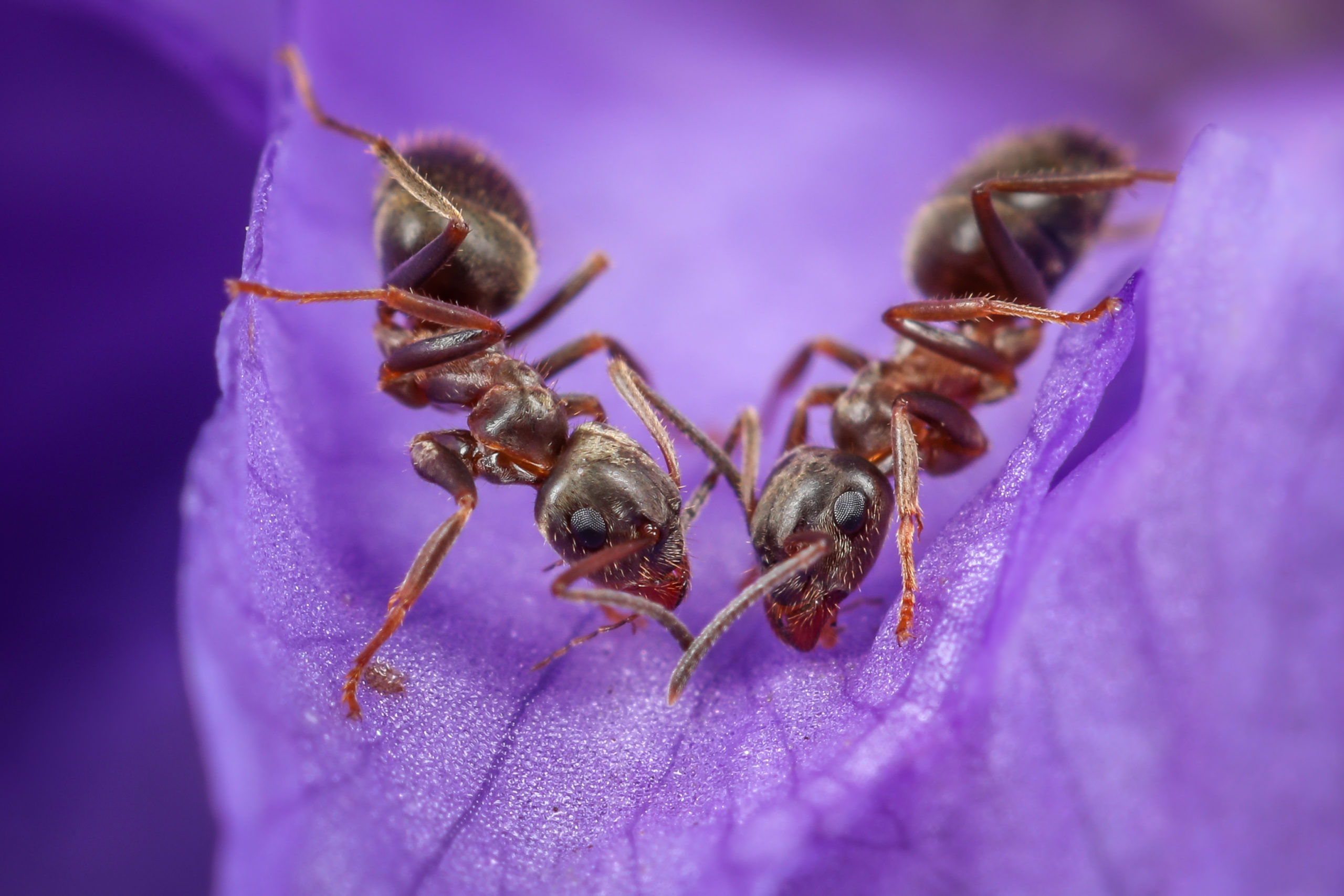 Details vastleggen die je met het blote oog nauwelijks kunt zien, dat doet Amanda graag. Deze twee mieren trof ze op een paars viooltje in haar achtertuin. De “samenwerking” van deze twee maakte de mieren extra fotogeniek. Het fotograferen viel niet mee, omdat de snelle diertjes bijna nooit stilzitten. Amanda was dan ook best trots dat het haar lukte om deze twee mieren, in één klap, scherp te fotografen.