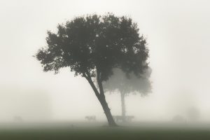 Prachtige sfeerplaat. Als je wat langer naar deze foto kijkt, kun je ondanks de mist toch allerlei vormen ontdekken. De achterste boom die deels overlapt wordt en een veel lichtere grijstint heeft, zorgt voor diepte in deze foto.