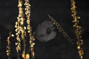 Het lijkt zo simpel: een spinnenweb en wat uitgebloeide planten. Maar door het schitterende licht is een zeer spannende en sfeervolle foto ontstaan.