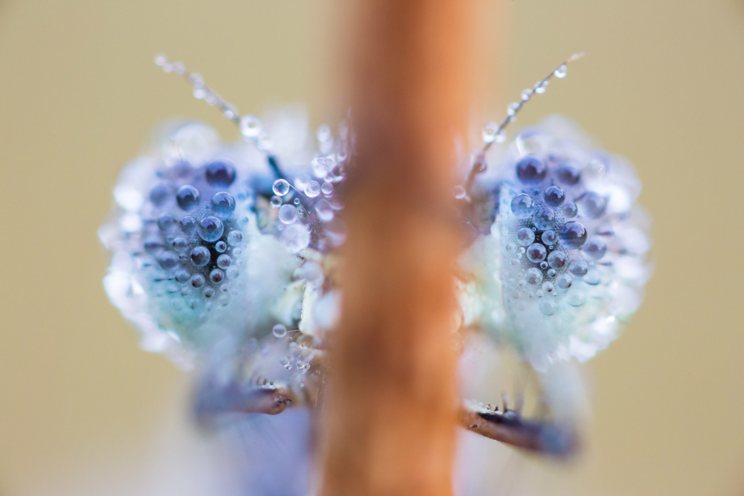 ” Heel veel blauwe ogen”, dat is de titel die fotograaf Paulien Bunskoek meegaf aan deze foto van een juffer. “Door alle druppels lijkt de juffer nog meer oogjes te hebben”, licht ze toe. Deze prachtige plaat is de nieuwe Roots Foto van de Week.