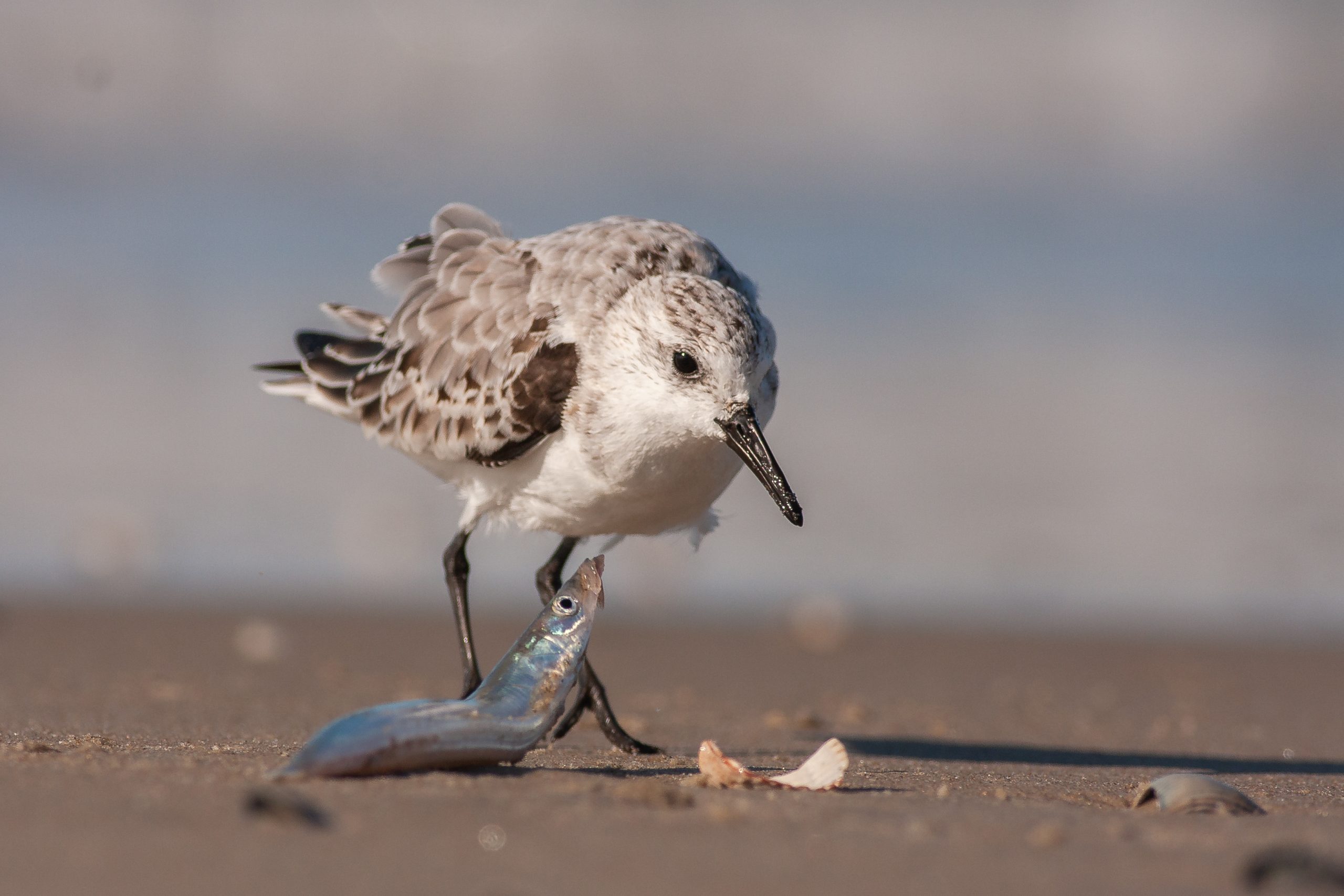 “Deze drieteenstrandloper had een spiering gevangen. Hij at hem niet op, maar “speelde” ermee.