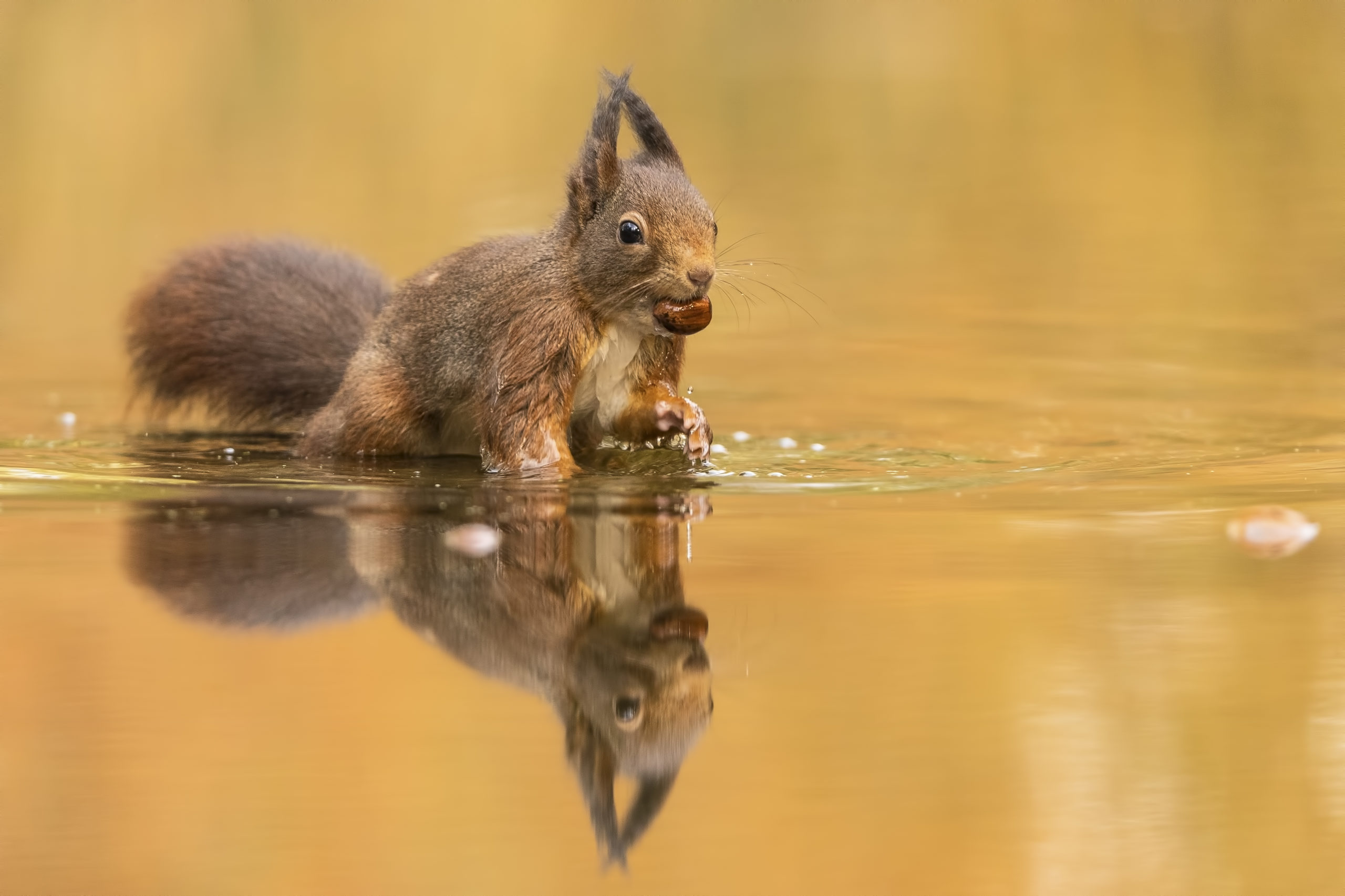 Deze foto van een eekhoorn in het water is de nieuwe Roots Foto van de Week. Ingrid van Gulick maakte deze schitterende plaat en gaf er de titel “lekker nootje aan”. “Het is prachtig om te zien hoe nootjes uit het water gevist worden”, aldus de fotograaf.