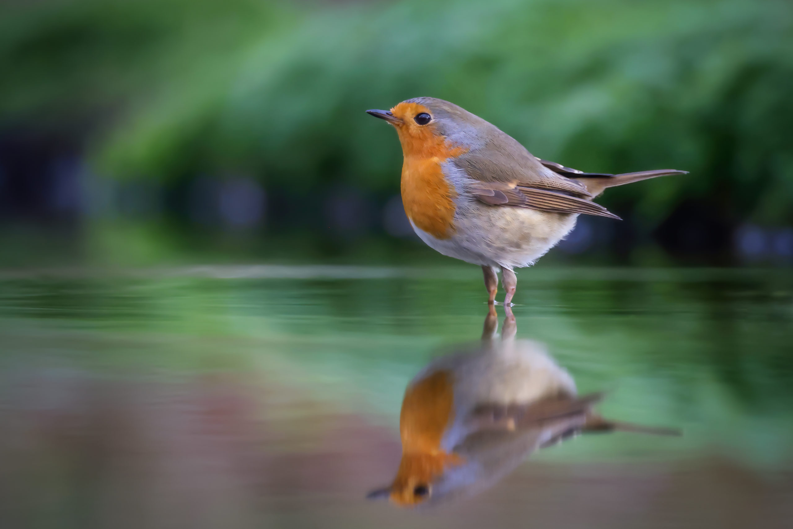 - Een roodborst op een takje, midden in het beeld geplaatst, is heel klassiek. Probeer eens te variëren met de compositie. Plaats hem bijvoorbeeld in de linkeronderhoek, als zijn blik dan naar de rechterbovenhoek is gericht, ontstaat er een mooie diagonale lijn. Mooie actiefoto’s maak je van een zingend roodborstje, of een roosborstje in het water.