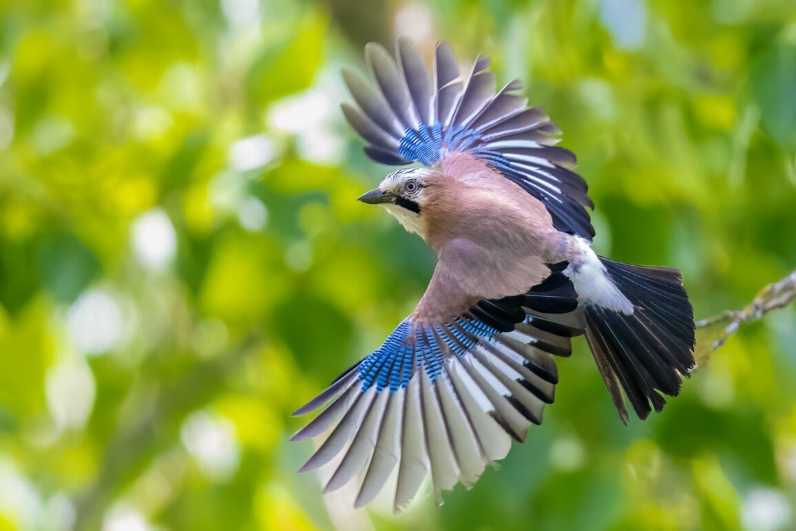 We zagen bij Roots al vaak foto’s van een gaai langskomen. Maar nog niet zo vaak van een gaai in vlucht. Op deze foto komen de kenmerkende blauwe vleugels goed tot hun recht.