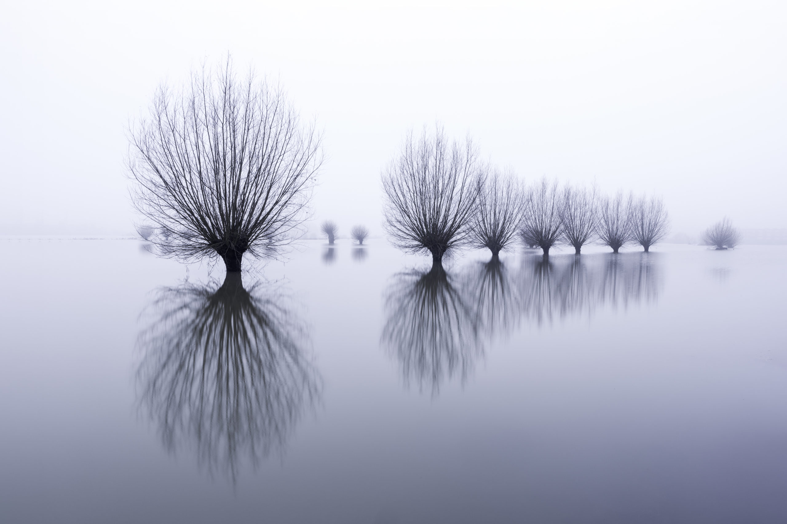 Een prachtige foto van hoog water in de uiterwaarden. Het lijnenspel en de spiegeling van de wilgen zijn subliem. Hans van Wijck maakte de foto, het is de nieuwe Roots Foto van de Week.