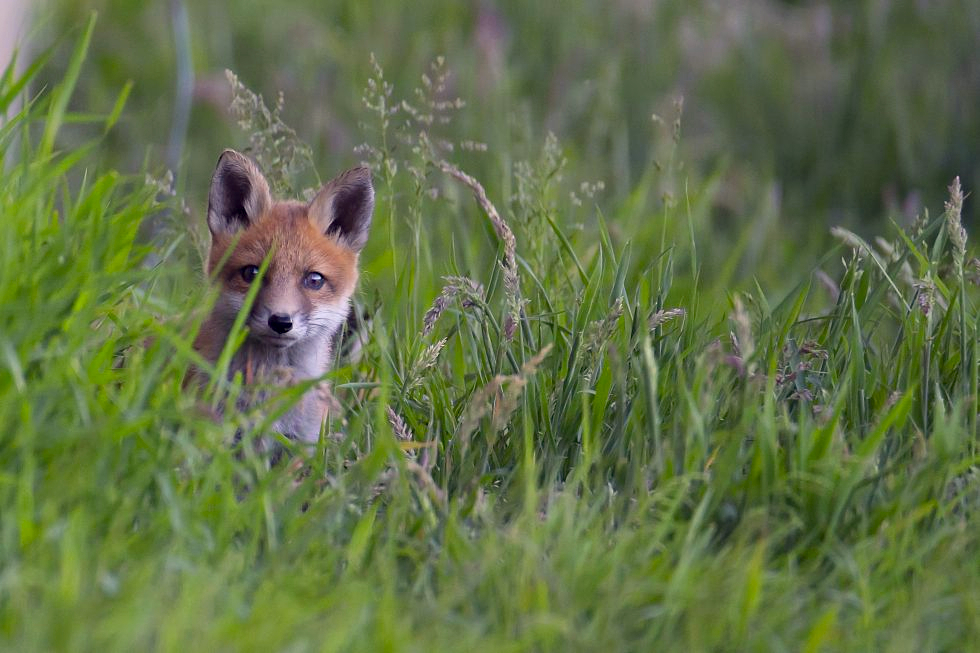Sacha zond deze foto van een jong vosje in het gras in voor de Roots Foto van de Maand juni/juliwedstrijd.