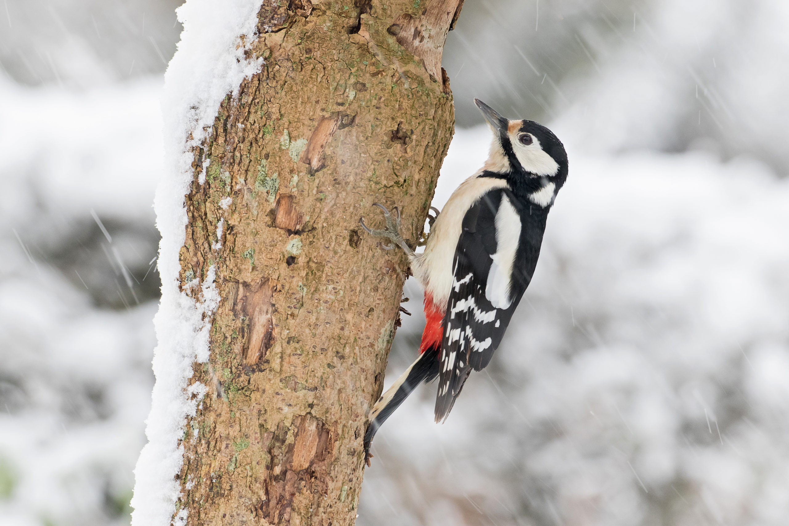 Prachtig, deze grote bonte specht in de sneeuw. Linda Van der Veeken is de fotograaf van deze nieuwe Roots Foto van de Week.