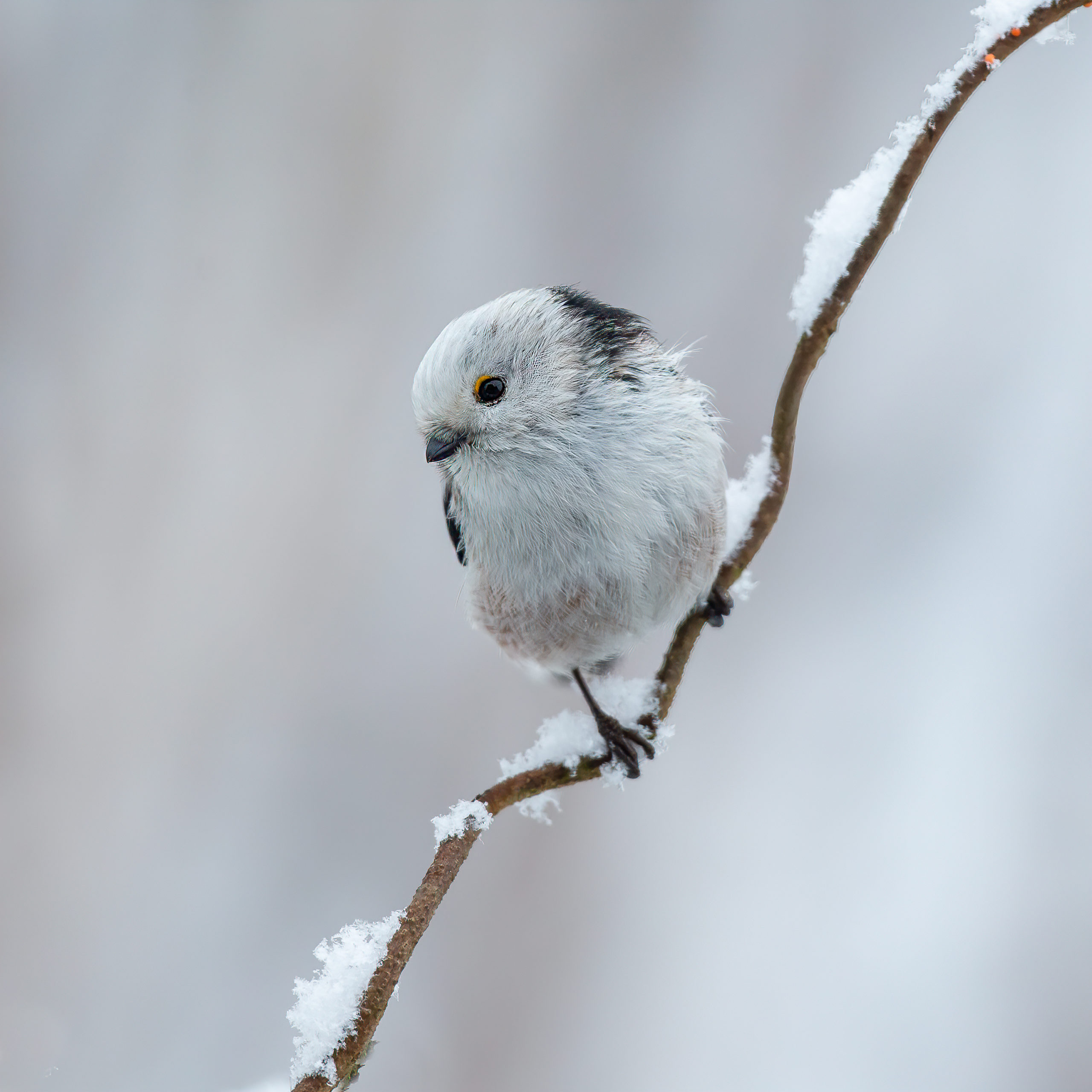 Deze staartmees zorgt voor een feestje bij fotograaf Annie Keizer: “Elke winter komt er wel een groepje staartmezen naar onze voedertafel. Soms zit er een witkoppige tussen. En als het dan sneeuwt…dan kan mijn dag niet meer stuk.” Het is inderdaad een verrassend gezicht zo’n witkoppige staartmees, normaal is de bovenkant van hun kop zwart met wit.