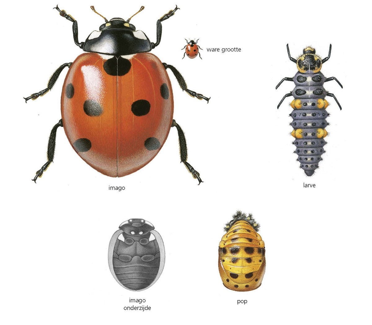 Na het informatieve deel komt ieder lieveheersbeestje aan bod op twee pagina’s. Mooi vooral zijn de illustraties van Richard Lewington. Naast de volwassen kever worden ook de larve en de pop afgebeeld. En handig: ieder lieveheersbeestje wordt ook op ware grootte getoond. Dan pas zie je hoe klein sommige soorten zijn. Klein maar fijn.