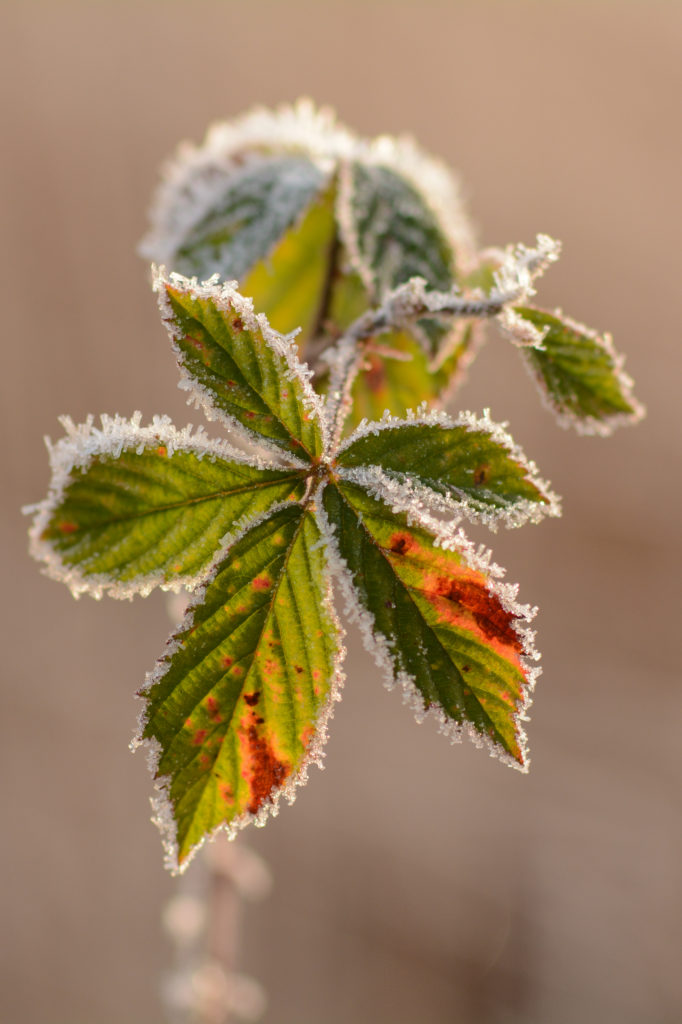 De rijp werkt in deze foto zeer contrastverhogend. De roestvlekken in het groen maken het beeld extra aantrekkelijk