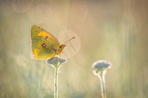 “Ik fotografeerde deze oranje luzernevlinder bij zonsopgang. Zo kreeg ik een prachtige bokeh-achtergrond. Ik gebruikte hiervoor mijn macrolens.”