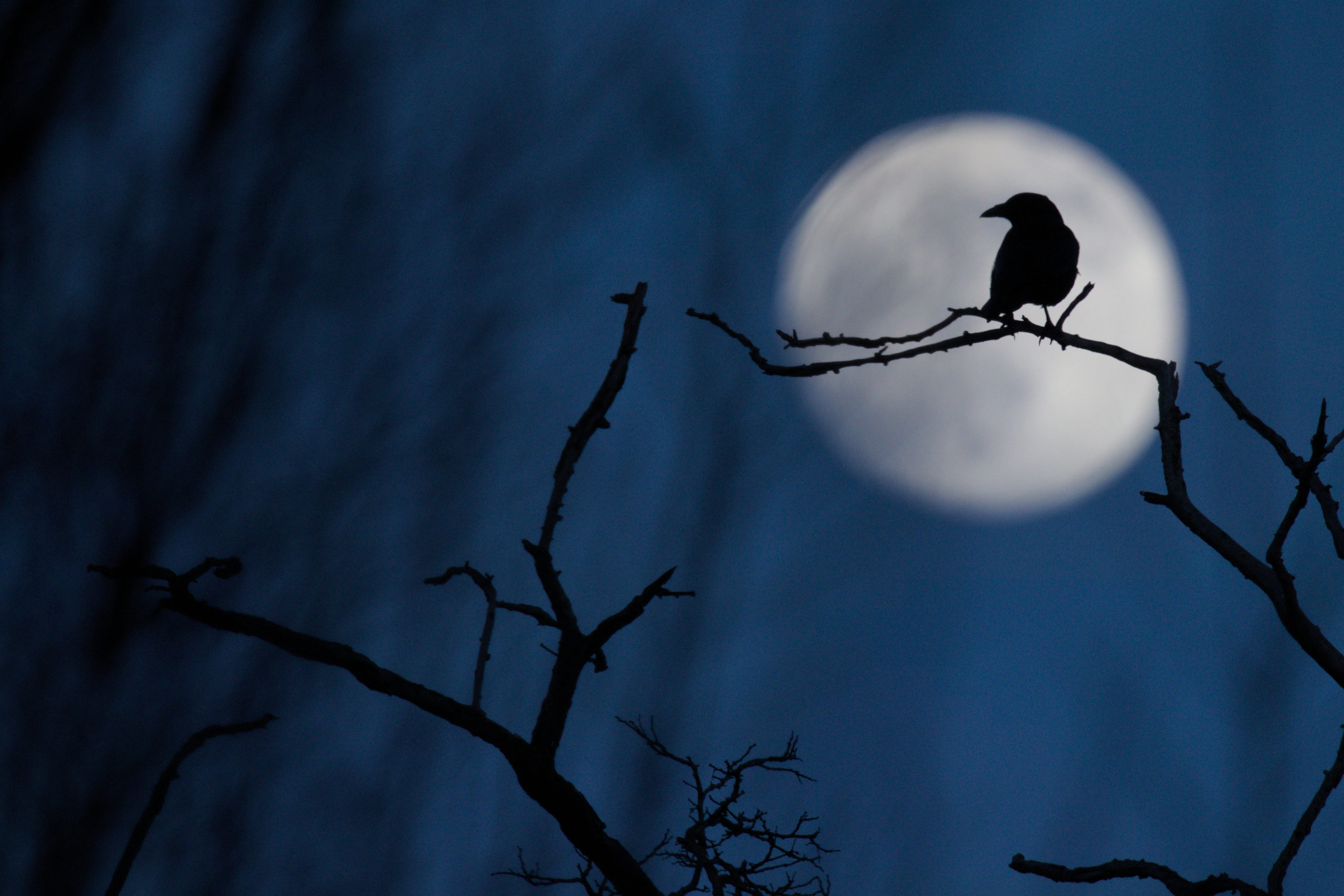 Kraai • Pieter Leblans- Een sublieme compositie. De maan staat mooi op tweederde van de breedte en de hoogte, en binnen de maan staat de kraai ook op tweederde van de breedte en de hoogte.