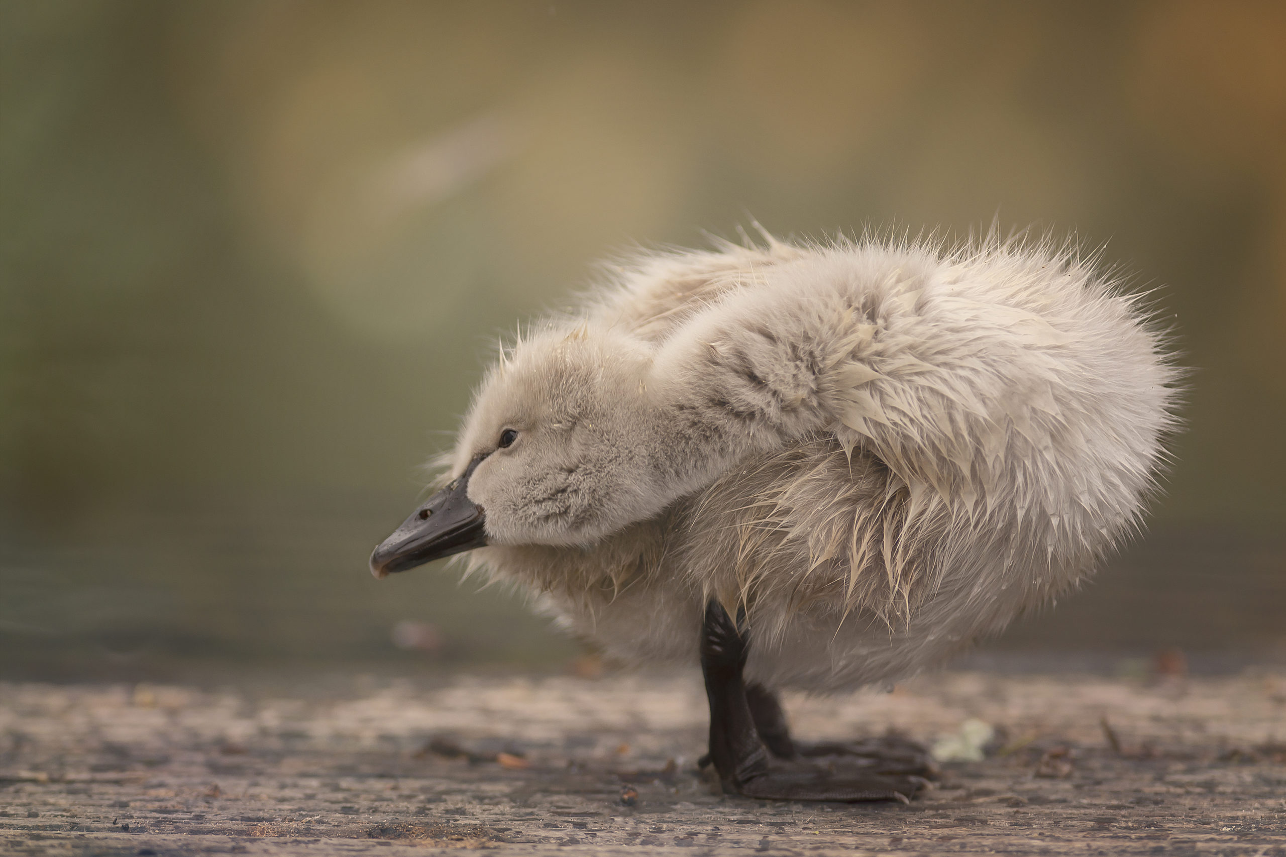Zwaantje • Corinne Cornelissen-Megens – De houding van het zwaantje, het mooie zachte licht en het sobere kleurenpallet zijn de grote troeven van deze foto.