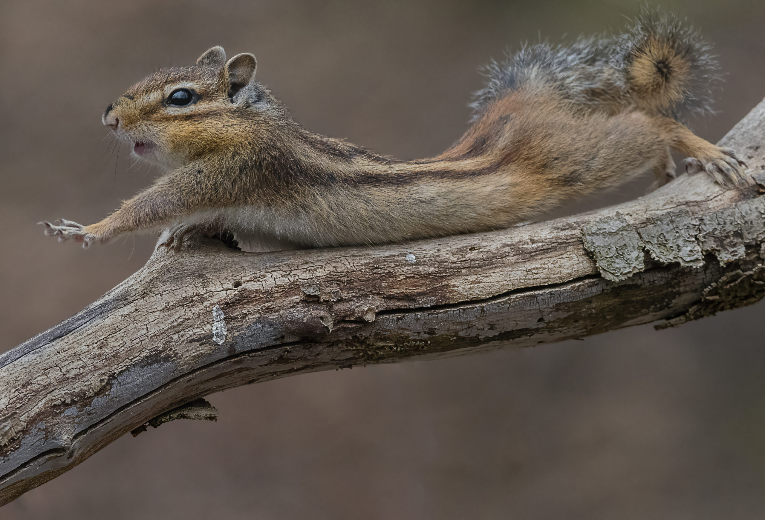 Stretching – Raymond Widawski. Mooi en grappig, zoals de grondeekhoorn de vorm van de tak lijkt te volgen.