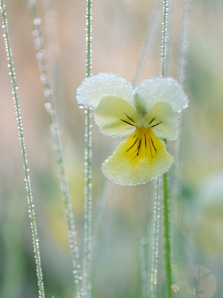 Natuurlijk is het handig om een macrolens te gebruiken bij wilde bloemen. Maar gezien de kwetsbare status van het zinkviooltje kan het nodig zijn om afstand te houden en bereik je dus meer met een telelens.