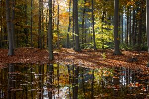 - Ga op zoek naar waterpartijen in het bos. Spiegelingen van herfstbomen in meren, vijvers of beken kunnen prachtige, symmetrische composities opleveren. Hierbij moet je dus juist geen polarisatiefilter gebruiken.