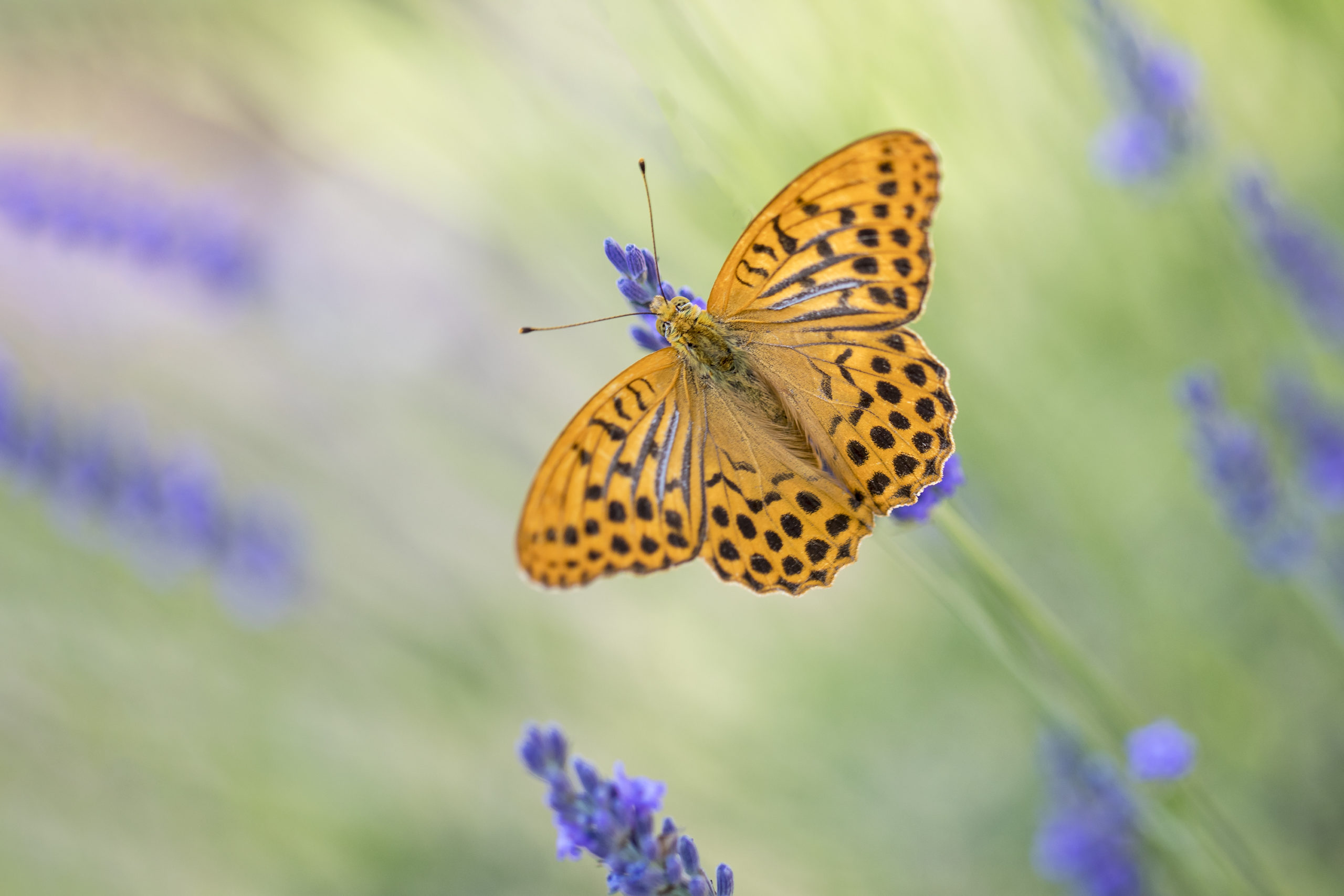 “Ik ben trots op deze foto, omdat het nogal wat moeite kostte om deze vlinder er goed op te krijgen… hij vloog steeds naar een andere lavendel bloem.”