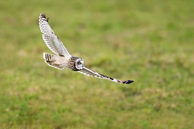 De velduil heeft en kenmerkend zwart masker en gele iris. Foto Marcel van Kammen