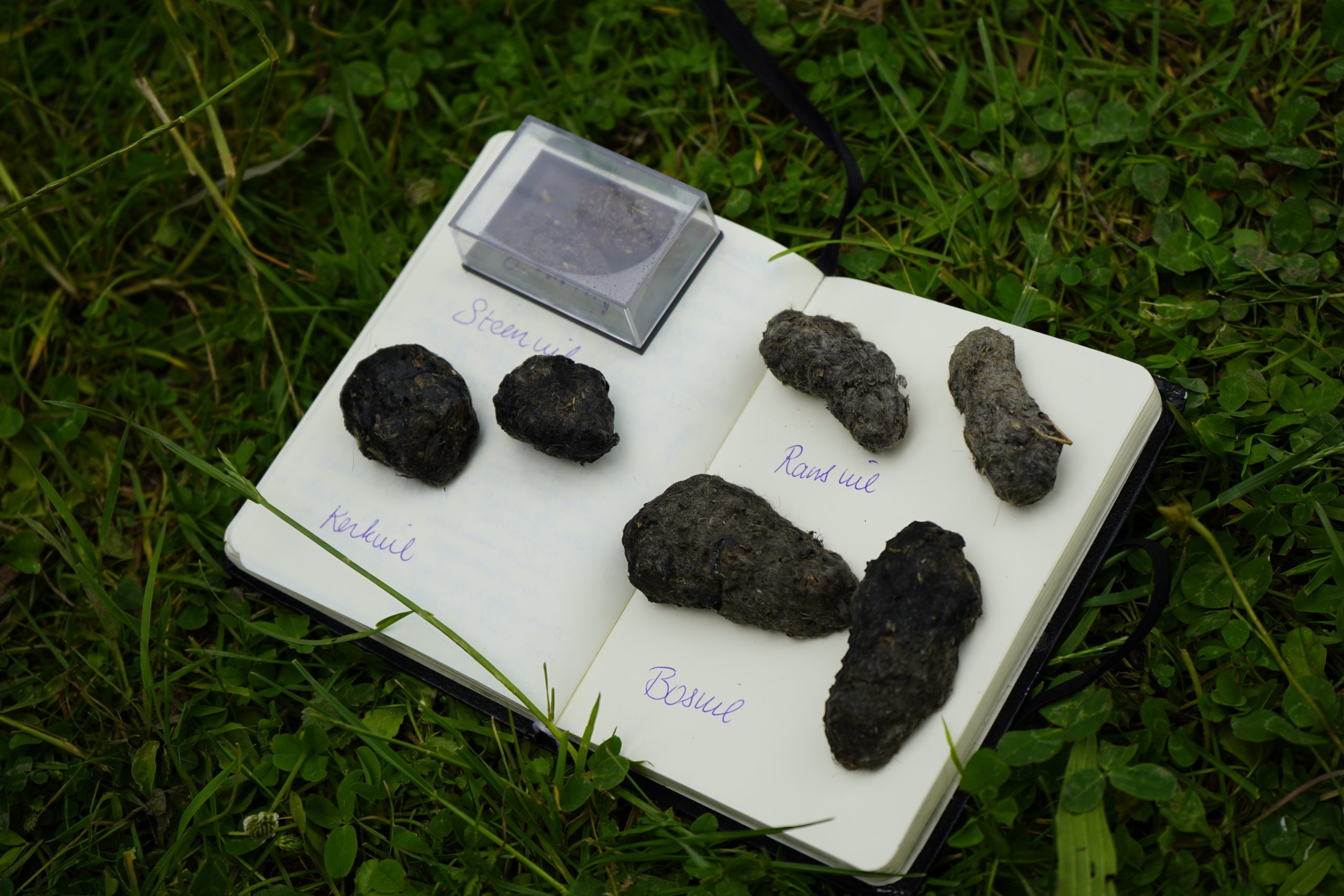 Niet het smakelijkste onderdeel, maar uitwerpselen van dieren bieden veel meer informatie dan loopsporen. Naast dat uitwerpselen ‘vertellen’ door welk dier ze achtergelaten zijn, kun je ook achterhalen wat er gegeten is. En de vindlocatie geeft je weer informatie over de territoria van het betreffende dier.