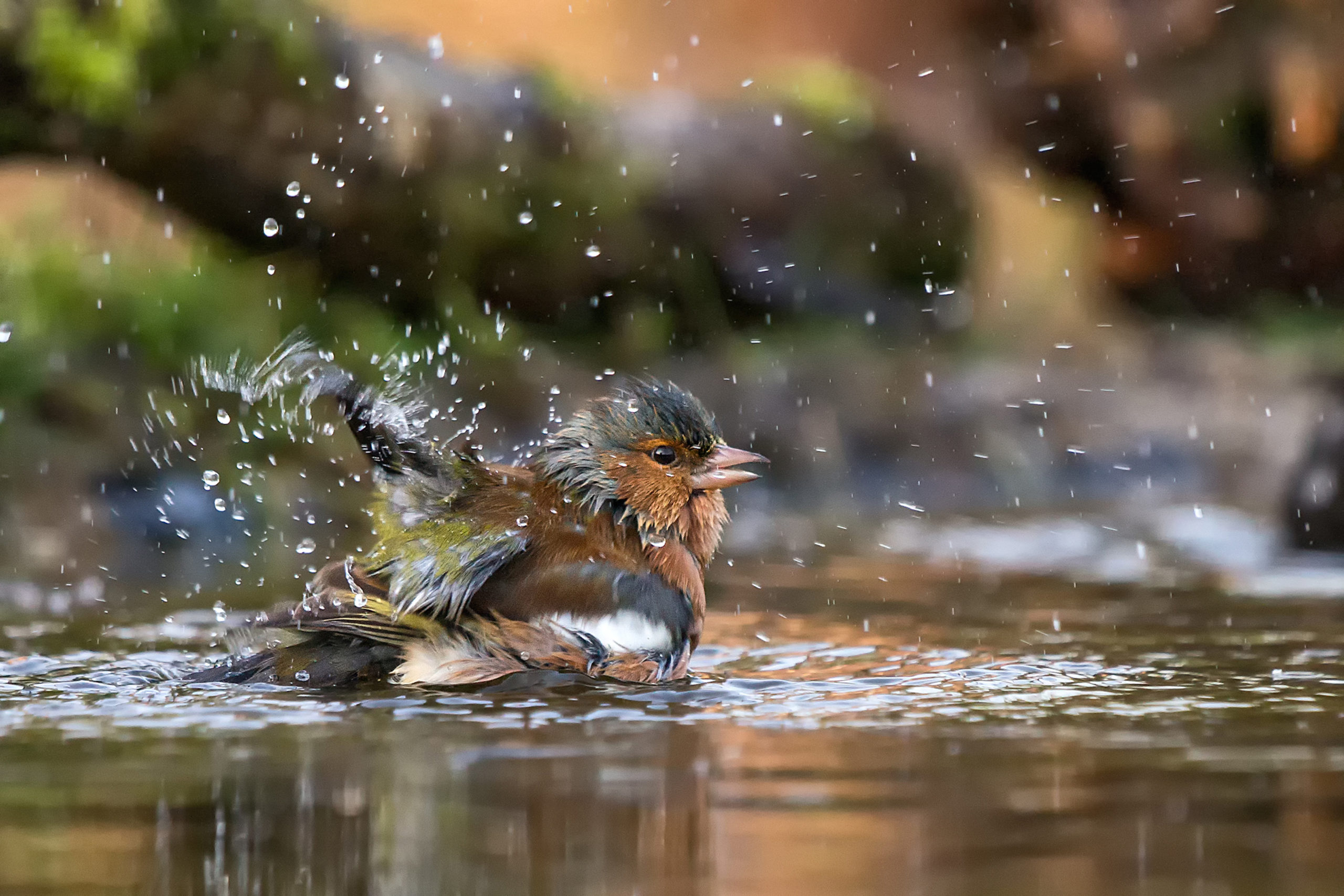 En dit is ‘m dan, de winnende foto van de afgelopen maand. Elly Riemens maakte deze schitterende plaat van een badderende vink. Benieuwd naar de andere winnaars van de Foto van de Maand juli? Klik hier.