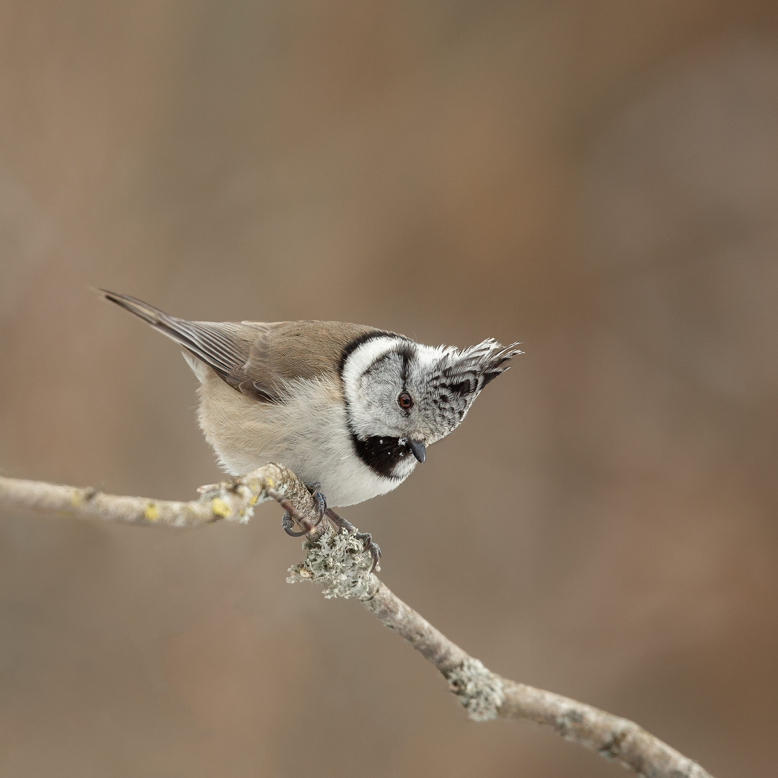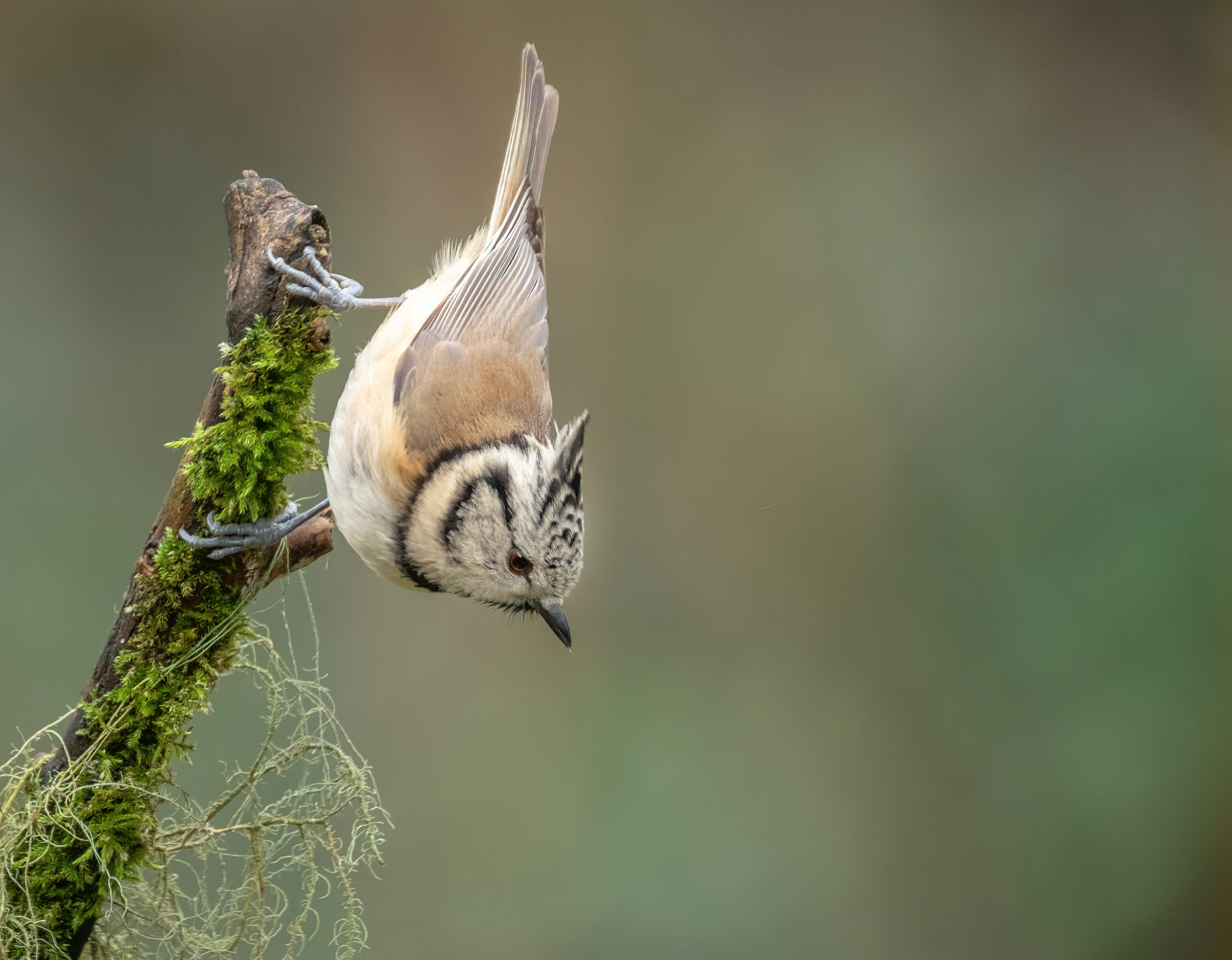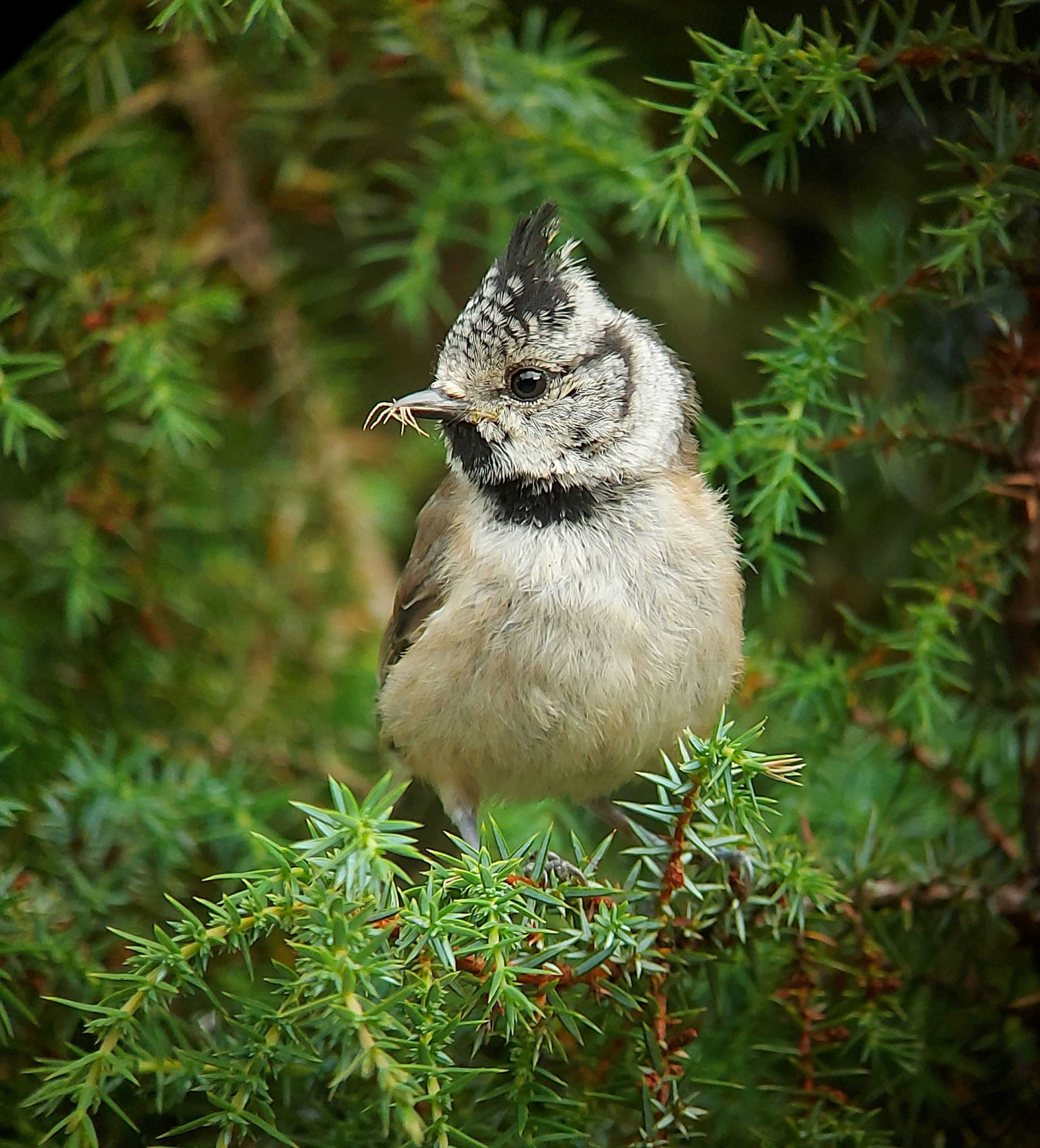 Kuifmees met insect • Marie-Jose Verbeeten – Mooie natuurlijke omlijsting, je krijgt het gevoel alsof je meekijkt over de schouder van de fotograaf