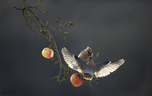 Pestvogels laten zich sinds november op veel plekken in Nederland van dichtbij bekijken en fotograferen, vaak in groepjes van enkele tot soms wel tientallen exemplaren. Ze plukken dan in korte tijd struiken met besjes leeg, het liefst van de Gelderse roos en vuurdoorns. Zijn de bessen op, dan zwerven ze verder. Check www.waarneming.nl waar ze zitten.