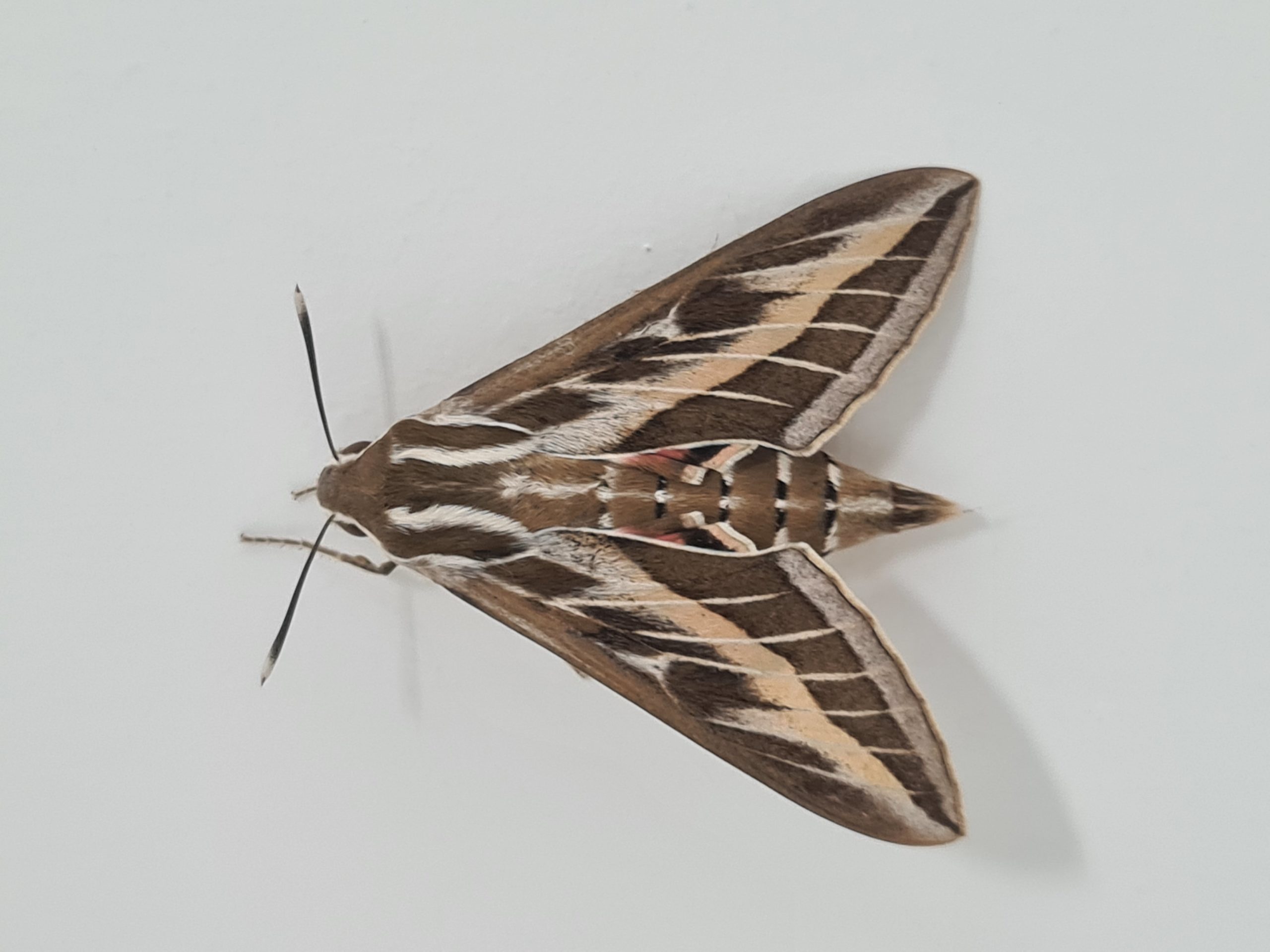 Op Texel is dinsdag een zeldzame gestreepte pijlstaart gevonden. Een prachtig getekende nachtvlinder, die normaal gesproken voorkomt in Zuid-Europa maar soms naar het noorden trekt. De vlinder heeft een spanwijdte van maar liefst 7 centimeter.