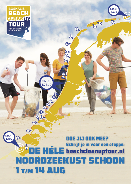 Van 1 tot en met 14 augustus is er weer de jaarlijkse Beach Cleanup Tour. Iedereen kan zich opgeven voor dit schoonmaak-evenement waarbij dagelijks een stuk Noordzeestrand onder handen wordt genomen. Er wordt begonnen in Cadzand en tegelijkertijd op Schiermonnikoog. Zo werken de teams naar elkaar toe en zullen ze elkaar ontmoeten in Zandvoort.