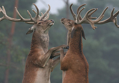 De hormonen gieren weren door de edelhertenlijven op dit moment. De vrouwtjes doen hun best om opgemerkt te worden, de mannetjes maken kabaal (burlen) en vechten met rivalen om de gunst van een vrouwtje.