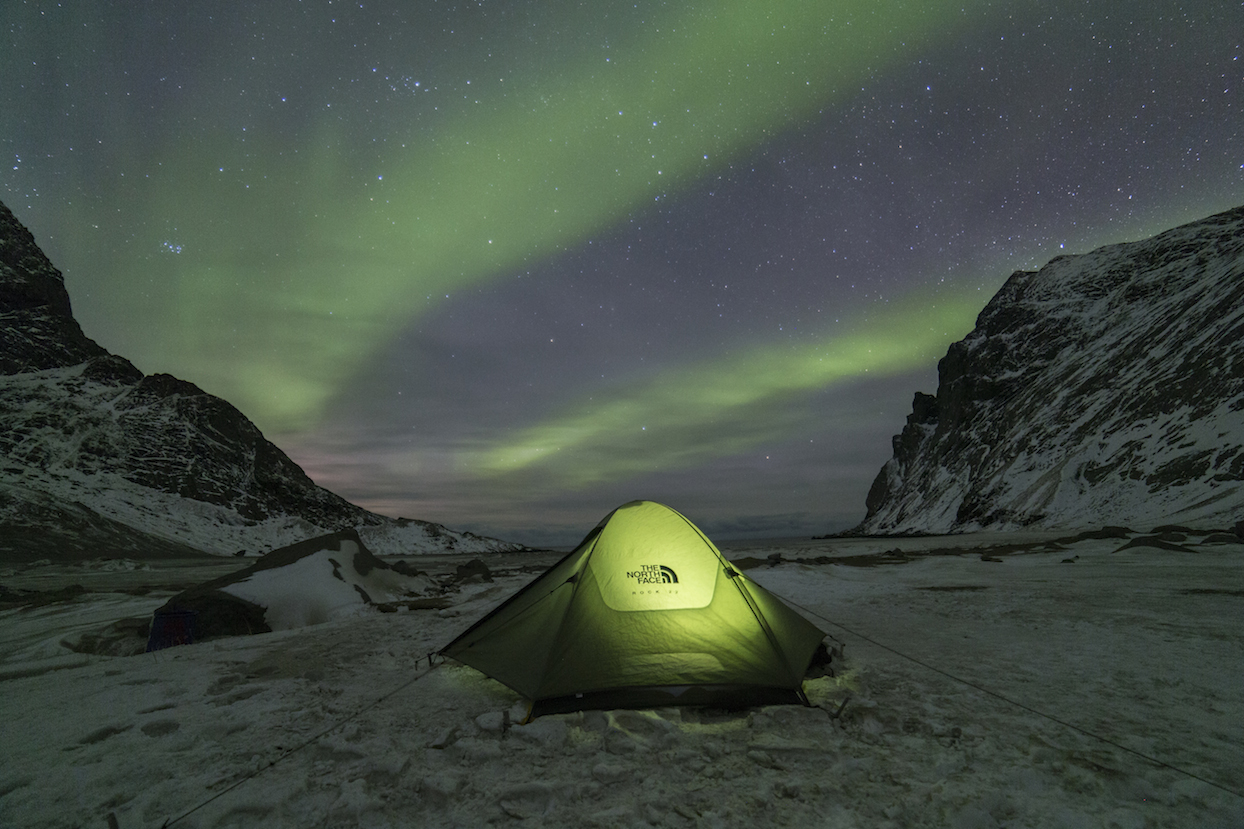 Om het noorderlicht optimaal te kunnen ervaren, is het ideaal om in een rustige omgeving te zijn, midden in de natuur. Daarom beginnen we een trip altijd met een wandeling waarbij we op zoek gaan naar verlaten strandjes waar we kunnen wildkamperen en om te genieten van het spectaculaire uitzicht – hopelijk met wat noorderlicht.