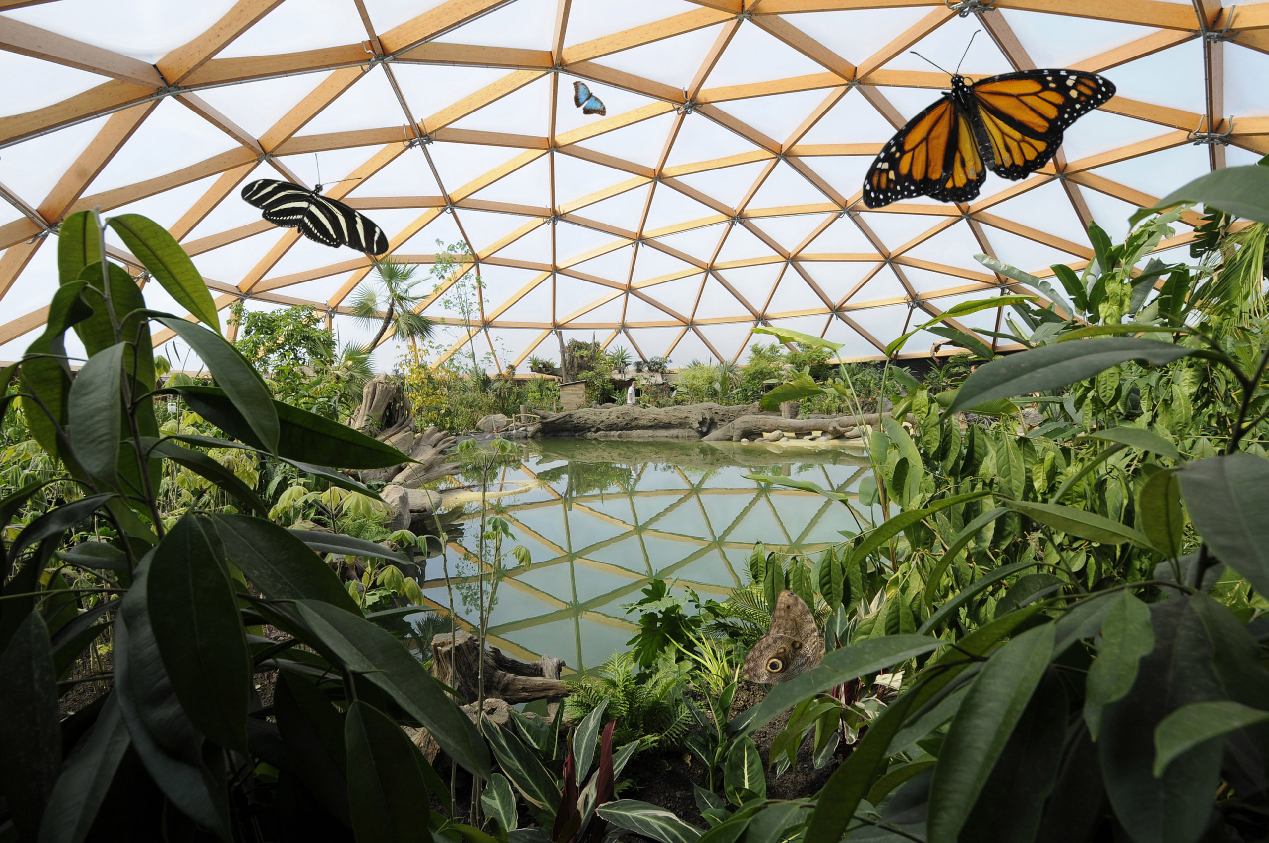 In een groot koepelvormig gebouw is een stuk Amazonegebied (ruim 2500 m2) nagemaakt. Het is hier tropisch warm en er fladderen duizenden kleurige Zuid-Amerikaanse vlinders rond. Het publiekspad loopt langs rivieroevers met tropische beplanting en heerlijk geurende bloemen. Vanaf een grote zandbank, midden in de rivier, is het leven in en om het water te bekijken.