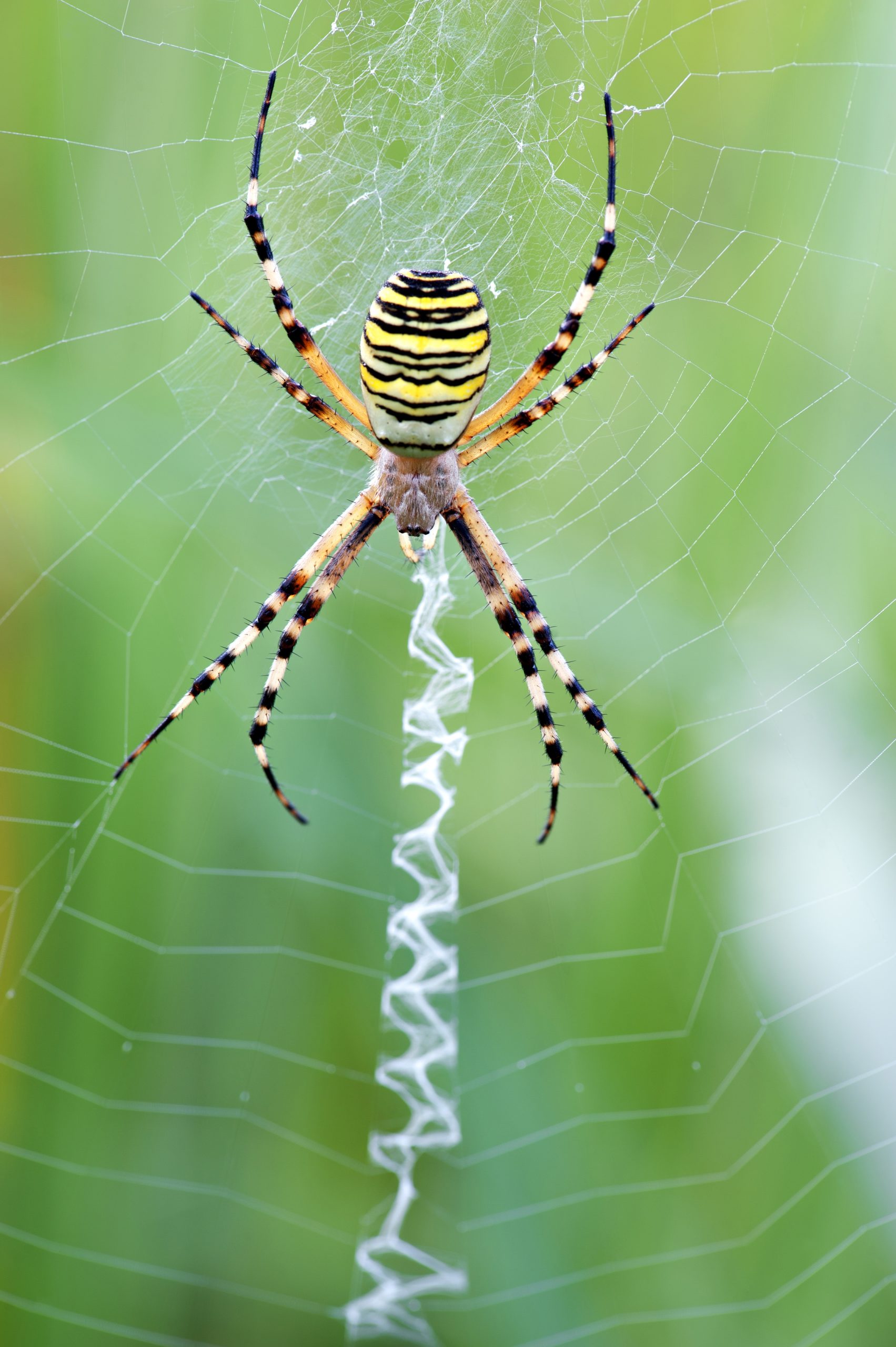 Als student biologie kwam Elfferich nader met spinnen in aanraking. “Dat lag aan een student-assistent, Peter Koomen. Hij was al heel lang aan het studeren – dat kon toen nog… – en ik was eerstejaars. Peter was (en is) een ongelooflijke spinnenfanaat en kon anderen enthousiast maken. Mij raadde hij aan Thiemes spinnengids te kopen, om te leren determineren. Dat deed ik en ik ging vol goede moed aan het werk. Die gids bleek wel heel moeilijk te zijn! Het lukte me vaak niet te vinden welke spin ik zag. Natuurlijk leerde ik er intussen wel iets van, en zo raakte ik tobbend en zoekend steeds meer in de ban van de spin. Ze zijn namelijk erg leuk én het is een enorm diverse groep. Er zijn ongelooflijke jagers bij, rennende jagers en springende jagers. De schorsmarpissa bijvoorbeeld is een echte tijger! Een roofdier. Hij besluipt andere spinnen en insecten en bespringt die. Andere soorten zitten de hele dag rustig af te wachten tot er een prooi in hun web vliegt. Iedereen kent de wielwebben van de kruisspin. Die webben zijn niet de enige jachthulpmiddelen die ze van hun spinsel maken. Er zijn ook spinnen die trechters maken, spinnen die hangmatjes ophangen met draden erboven die de insecten tegenhouden en ze in het matje doen vallen, en zelfs spinnen die ruimtelijk werken met hangende draden, zoals de kogelspinnen. Er zijn spinnen die het spinrag gebruiken om er schuilplekken van te maken, andere bouwen cocons voor hun eieren, veiligheidslijnen om zichzelf te zekeren en lijnen voor luchtreizen. Wat ook leuk is: spinnen zien er allemaal anders uit. Sommige zijn echt heel bijzonder. Neem de vrouwtjes-schorsmarpissa met haar gele snor… Of de wespspin, met haar geel-zwarte strepen die ook tijgerspin genoemd wordt. En die ogen! Sommige spinnen hebben ze letterlijk op hun rug. Als je ze van achteren benadert, draaien ze zich om.”
