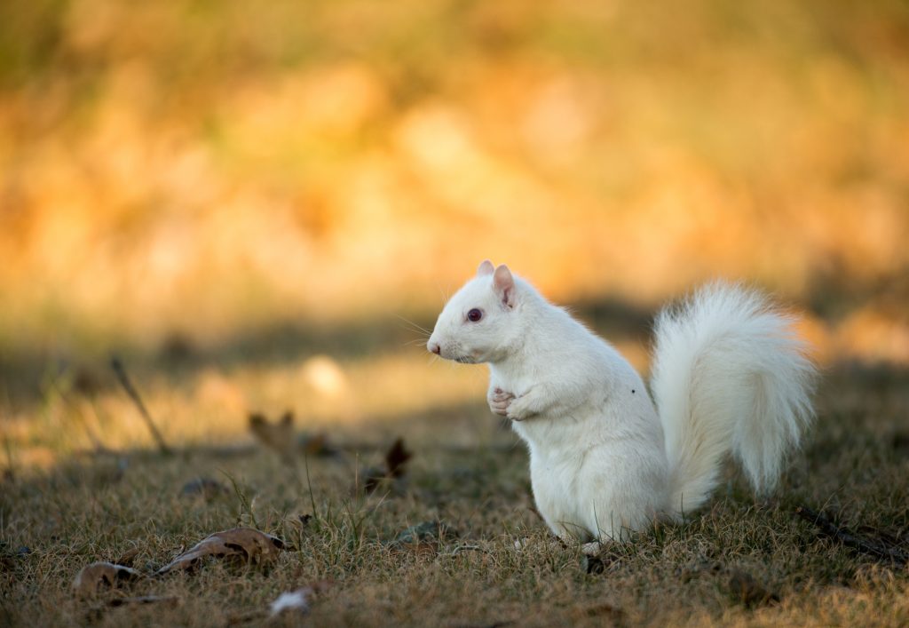 Dit is een witte eekhoorn, maar ook een grijze. Dat is namelijk de naam van deze Noord-Amerikaanse soort, die in Engeland is verwilderd en daar in grote delen de rode eekhoorn heeft verdrongen. Grijze eekhoorns zijn niet schuw. In Central Park eten ze bij mensen uit de hand. In verhouding worden van deze soort relatief vaak volledig witte exemplaren gezien.