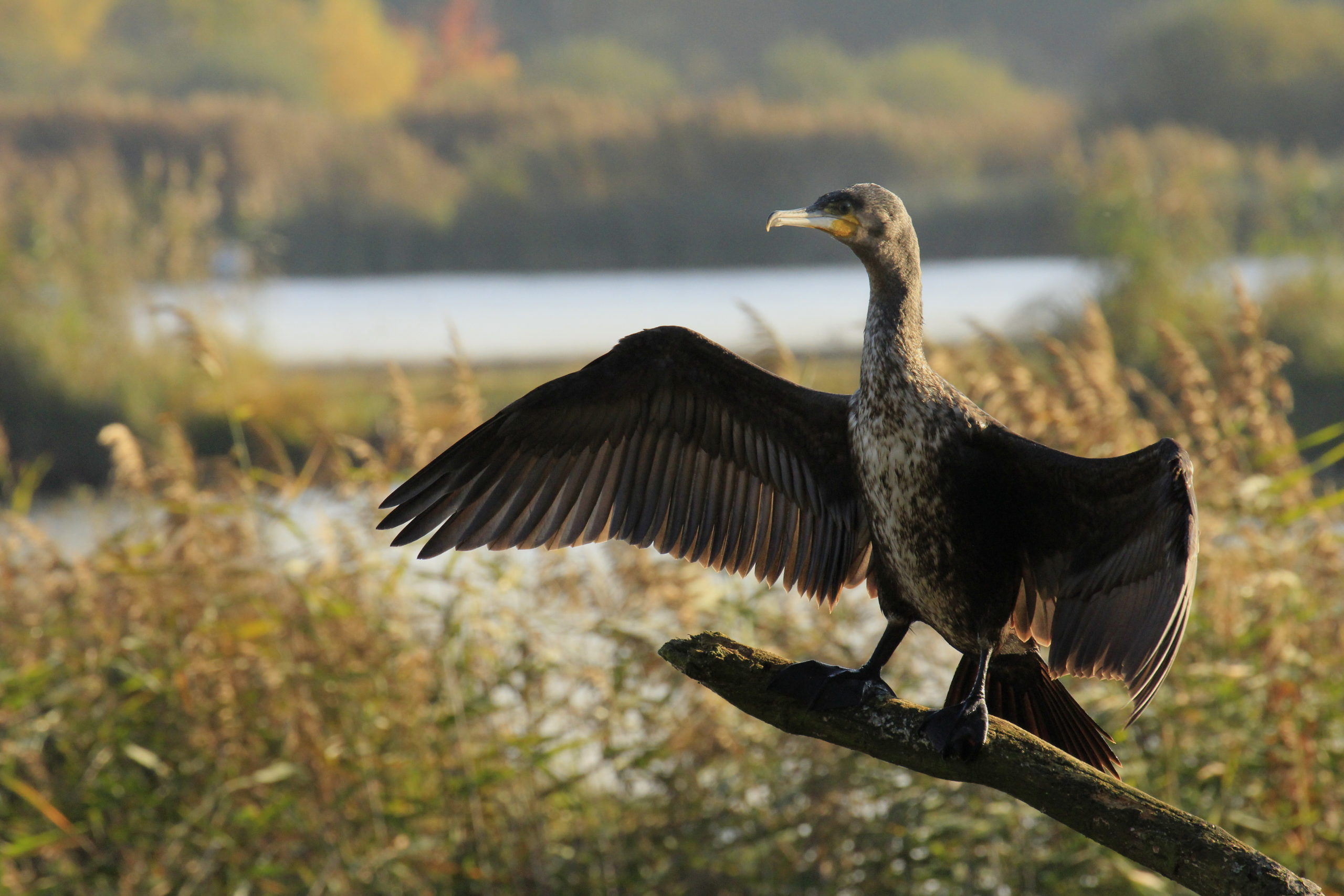 Een kenmerkende houding voor de aalscholver. Vroeger werd gedacht dat de vogel zijn vleugels spreidde om ze te laten drogen. Wetenschappers twijfelen nu aan die verklaring. Foto: Jan van Herk