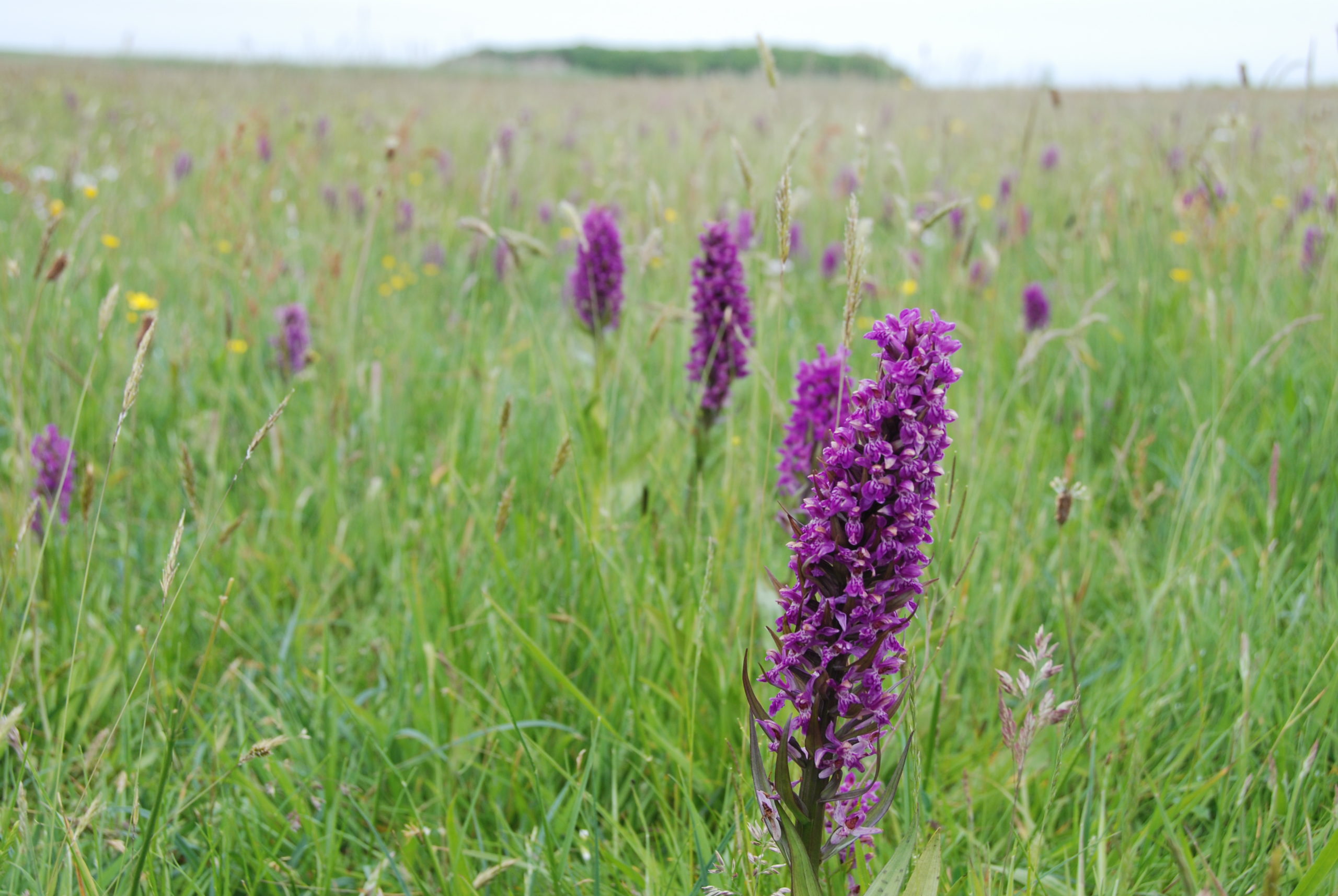Bloeiende orchideeën in Dorpzicht, Texel.