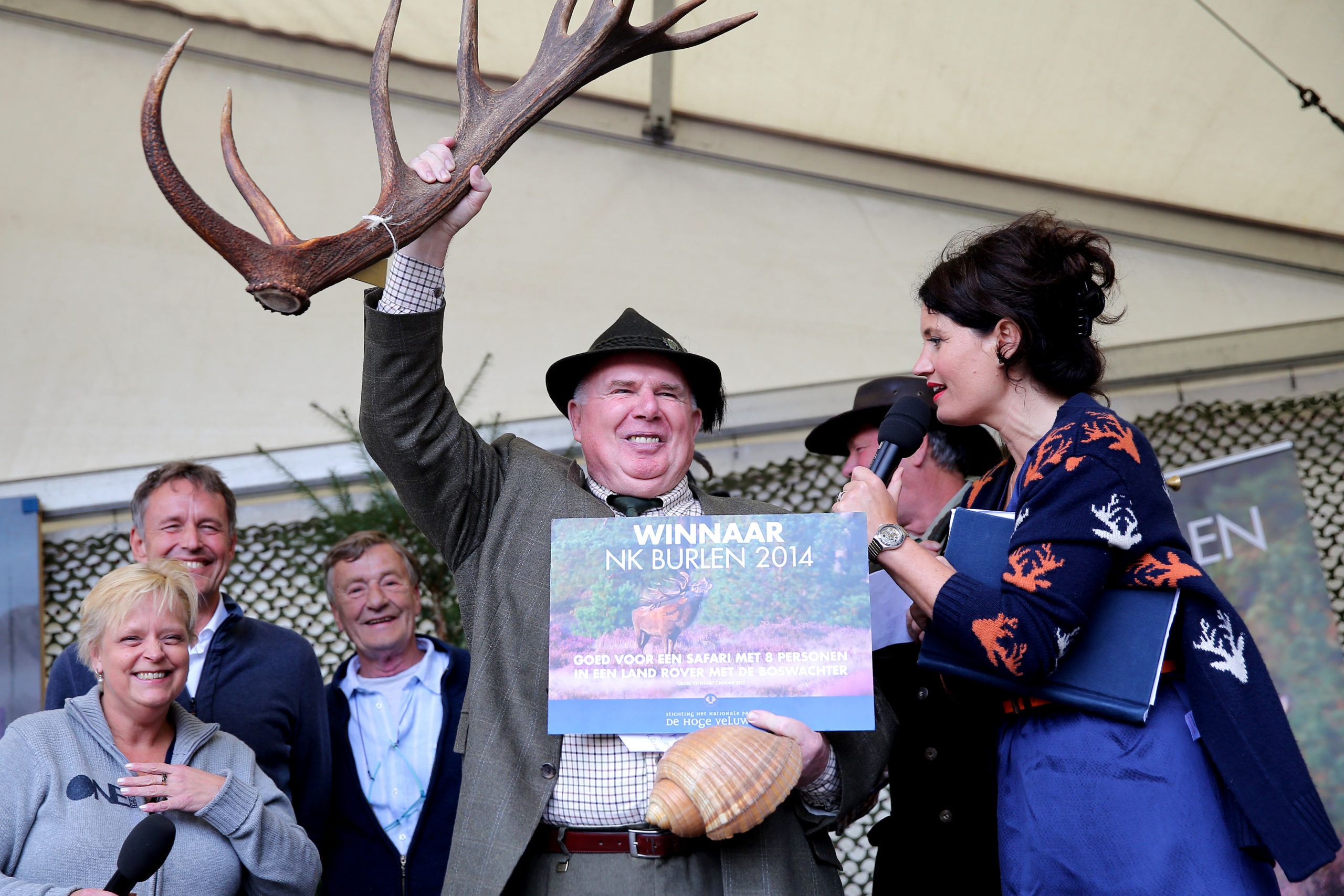 Winnaar werd Gerard Jansen, met grote trots nam hij de winnaarstrofee –een gewei- in ontvangst. Gerard is 73 en komt uit het Gelderse Meghelen. (foto Rob Voss)