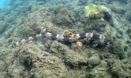 Geen griezelig ‘Jaws-monster’ maar een beetje schuchtere, aandoenlijke bodemkruiper. Dat is de haaiensoort Hemiscyllium halmahera -ook wel bamboehaai genoemd- die onlangs bij Ternate (oost-Indonesië) is ontdekt. Het dier meet zo’n 70 cm en gebruikt zijn zwemvliezen om over de zeebodem te lopen.