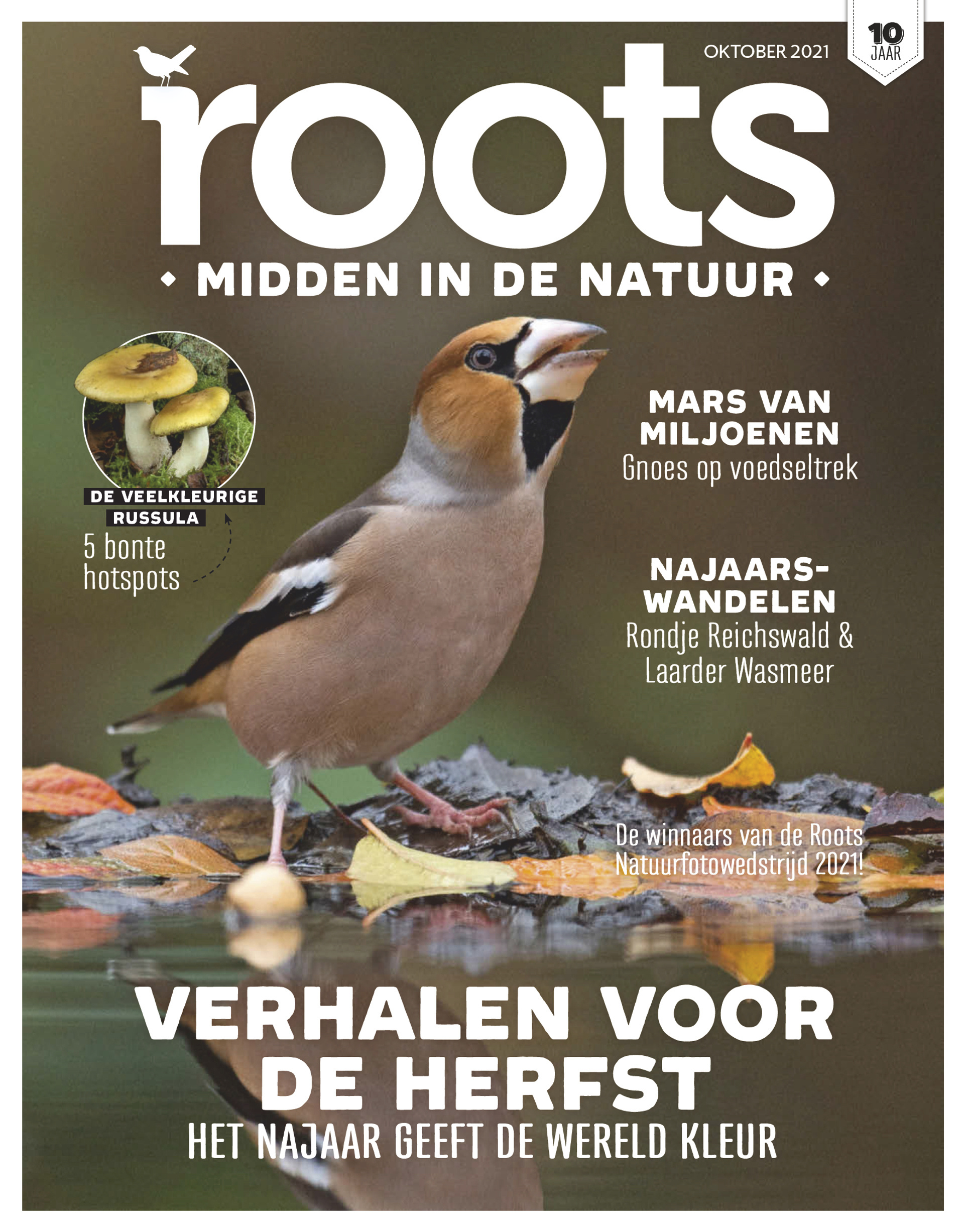 Vanaf donderdag 23 september ligt de nieuwste editie van Roots bij abonnees op de deurmat én in de winkel. In dit nummer lees je o.a. over de Roots Natuurfotowedstrijd: de winnaars, de 5 hotspots van de veelkleurige russula, wildebeesten die op trek gaan en zijn we in de ban van wormen. Lees je mee?
