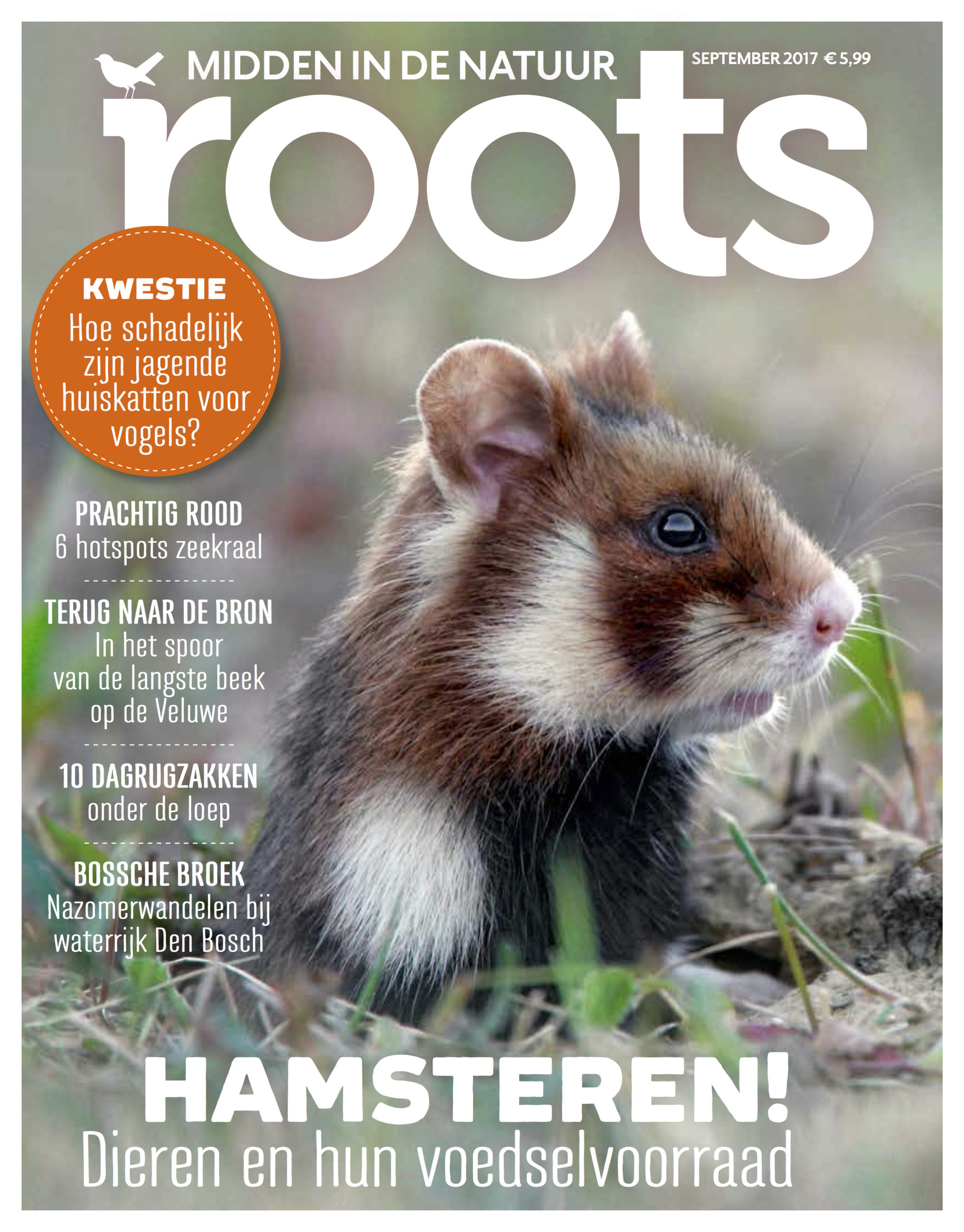 De Roots van september 2017 ligt vandaag in de winkel en bij de abonnees op de deurmat! In dit nummer alles over “Hamsteren!”, hoe leggen dieren een wintervoorraad aan. Ook interessant: zijn huiskatten schadelijk voor de vogelstand? En we gaan op zoek naar zeekraal. Handig: Roots neemt 10 dagrugzakken onder de loep. We volgden de langste beek op de Veluwe en wandelden door het Bossche Broek, ten zuiden van Den Bosch.